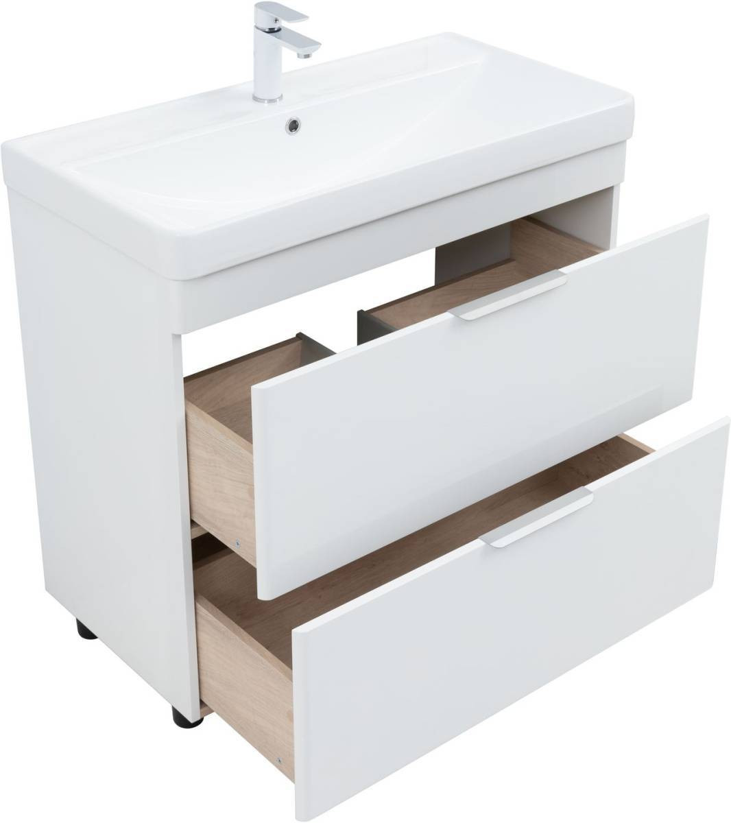 Тумба под раковину (Без раковины) Aquanet Ирис New 90 напольная, белый глянец