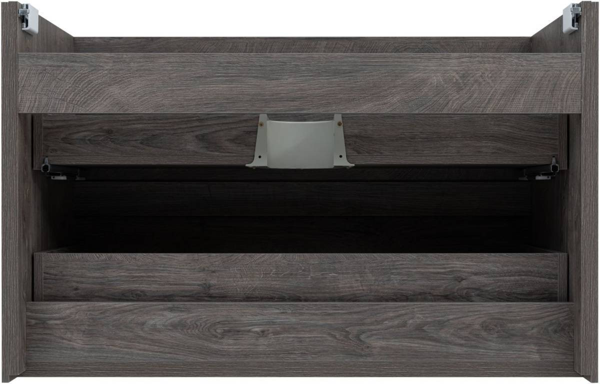 Кроме того, надёжные навесы, способные выдерживать нагрузки до 130 кг, обеспечивают уверенную поддержку раковины и всего оборудования. Внутреннее пространство тумбы организовано с умом: выдвижные ящики из ВЛДСП имеют прочное дно и направляющие частичного выдвижения, что делает их идеальными для хранения туалетных принадлежностей. Специальная пластиковая вставка под сифон в сером цвете завершает функционал тумбы, сохраняя при этом чистоту и порядок в ванной комнате.