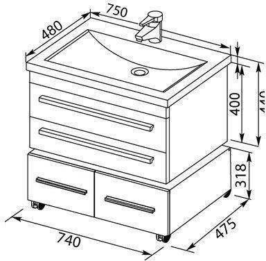 Тумба под раковину (без раковины) Aquanet Нота 75 белый