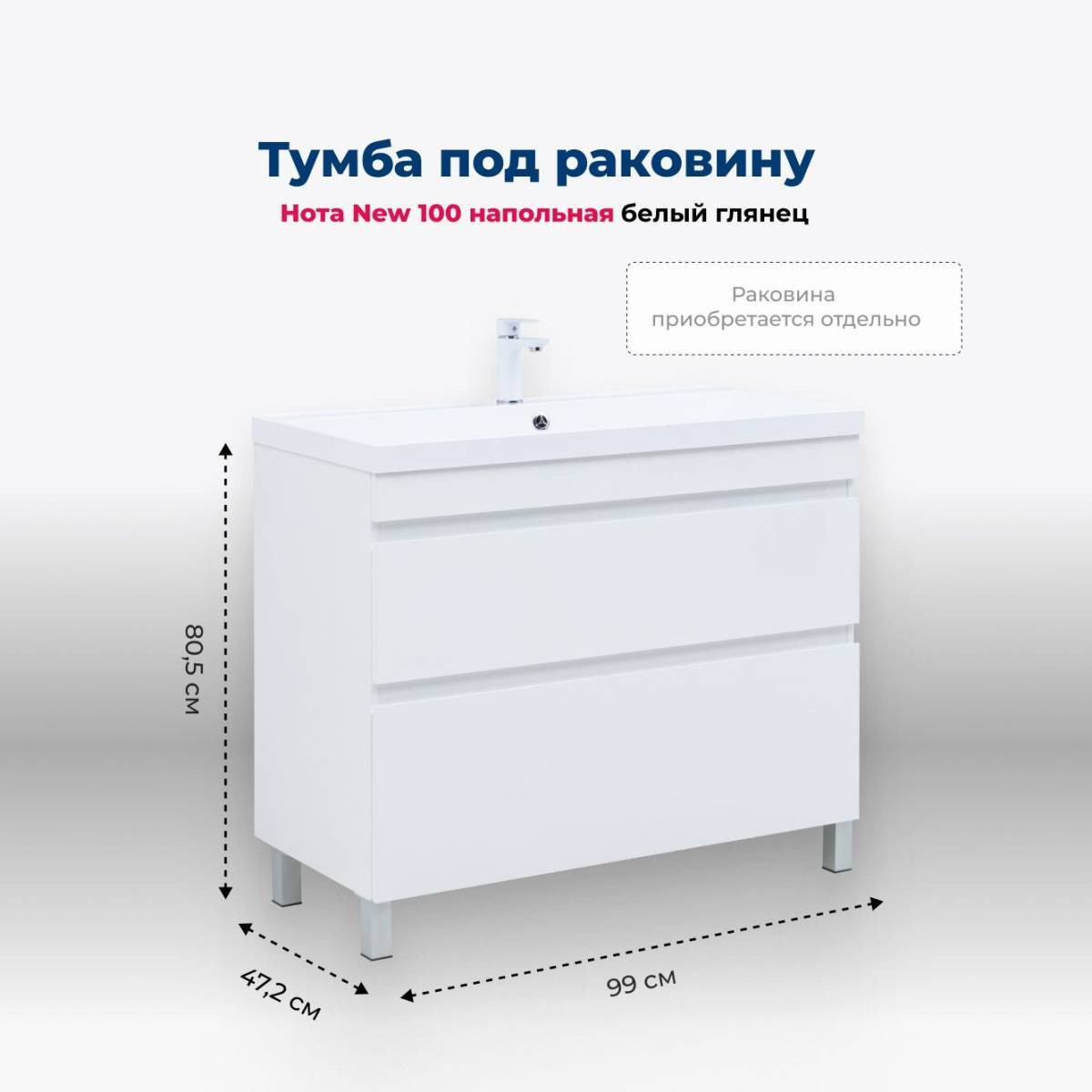 Тумба Aquanet Нота New 100 – это идеальное сочетание эстетики, функциональности и надежности для вашей ванной комнаты.