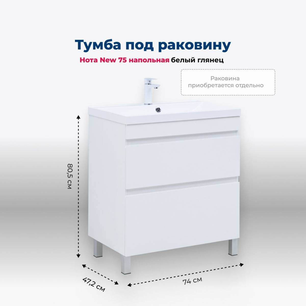 Тумба под раковину (без раковины) Aquanet Нота New 75 белый глянец