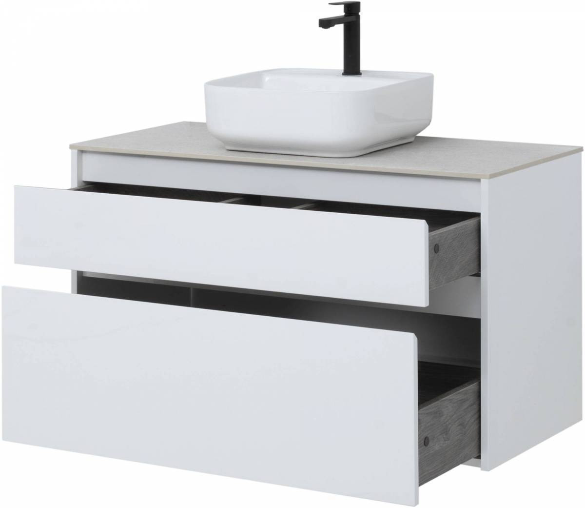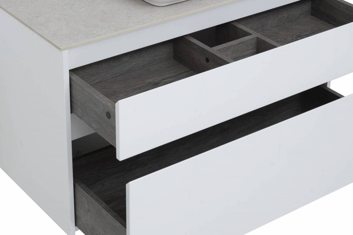 Тумба под раковину Aquanet Nova Lite 100 белоснежного цвета из влагостойкой ламинированной древесно-стружечной плиты выглядит нарядно. Подвесной монтаж придает визуальную легкость тумбе шириной 100 см. Она оборудована двумя выдвижными ящиками. Ящики довольно вместительные и позволяют разместить все необходимое. Комплектуются направляющими немецкого производства Hettich Quadro, оснащенными доводчиками. Фасады выполнены с декоративной интегрированной ручкой, не имеющей острых краев и внутренних углов, что обеспечивает удобство эксплуатации и легкий уход за мебелью. Для комплектации тумбы можно выбрать: либо неглубокую стильную встраиваемую керамическую раковину «Латина», либо столешницу, в которой уже предусмотрено отверстие для установки накладной раковины.