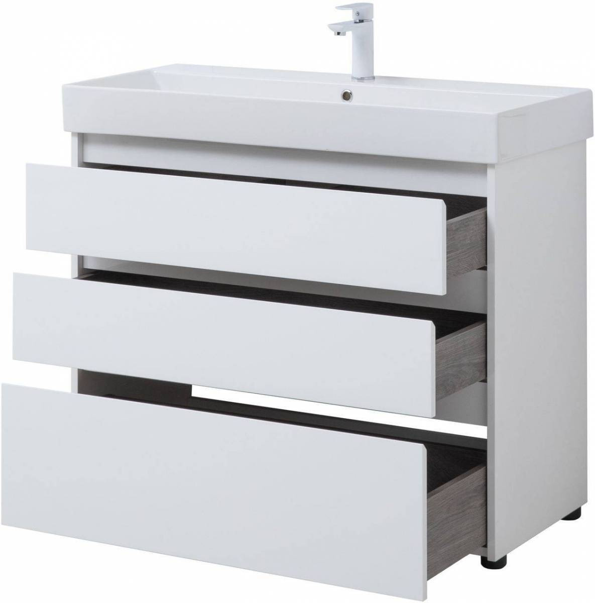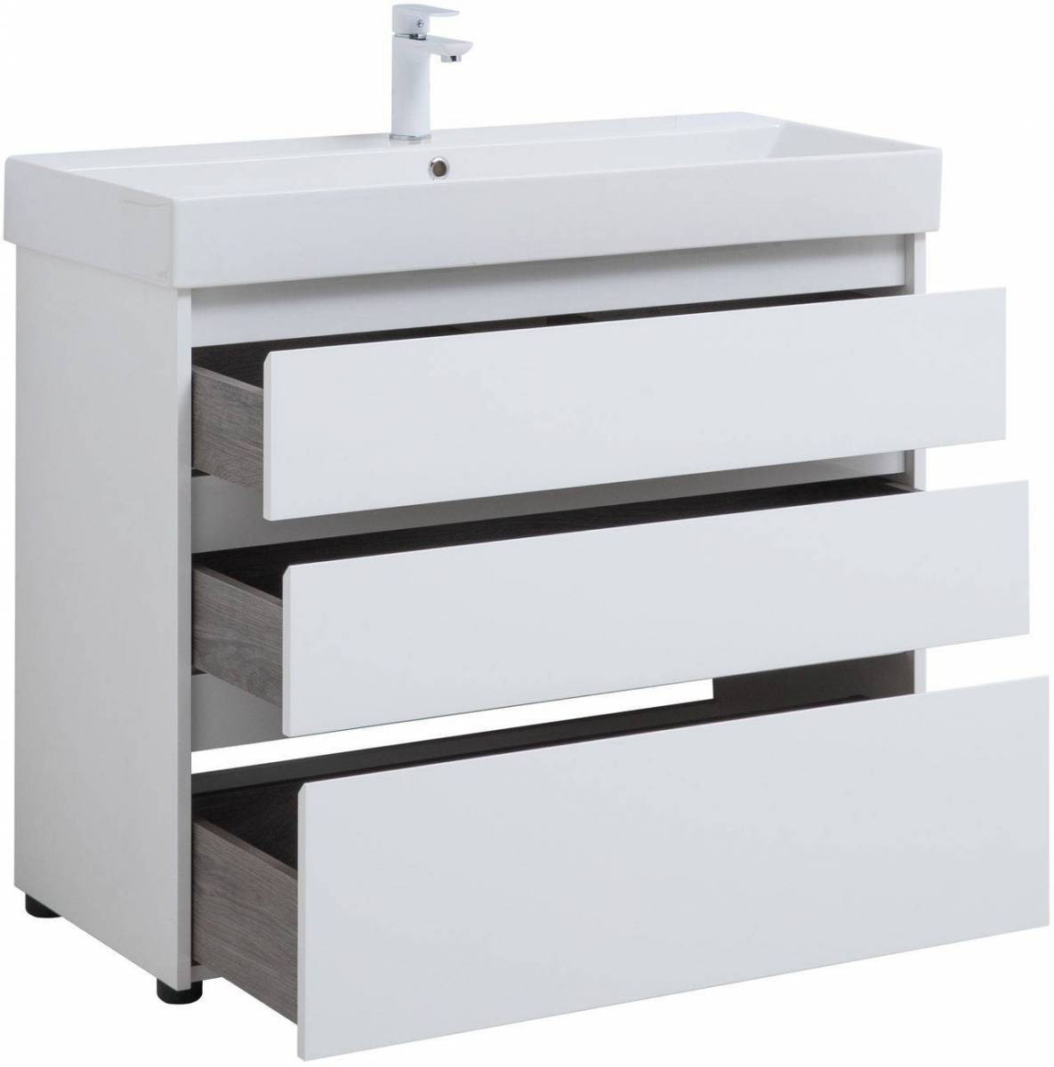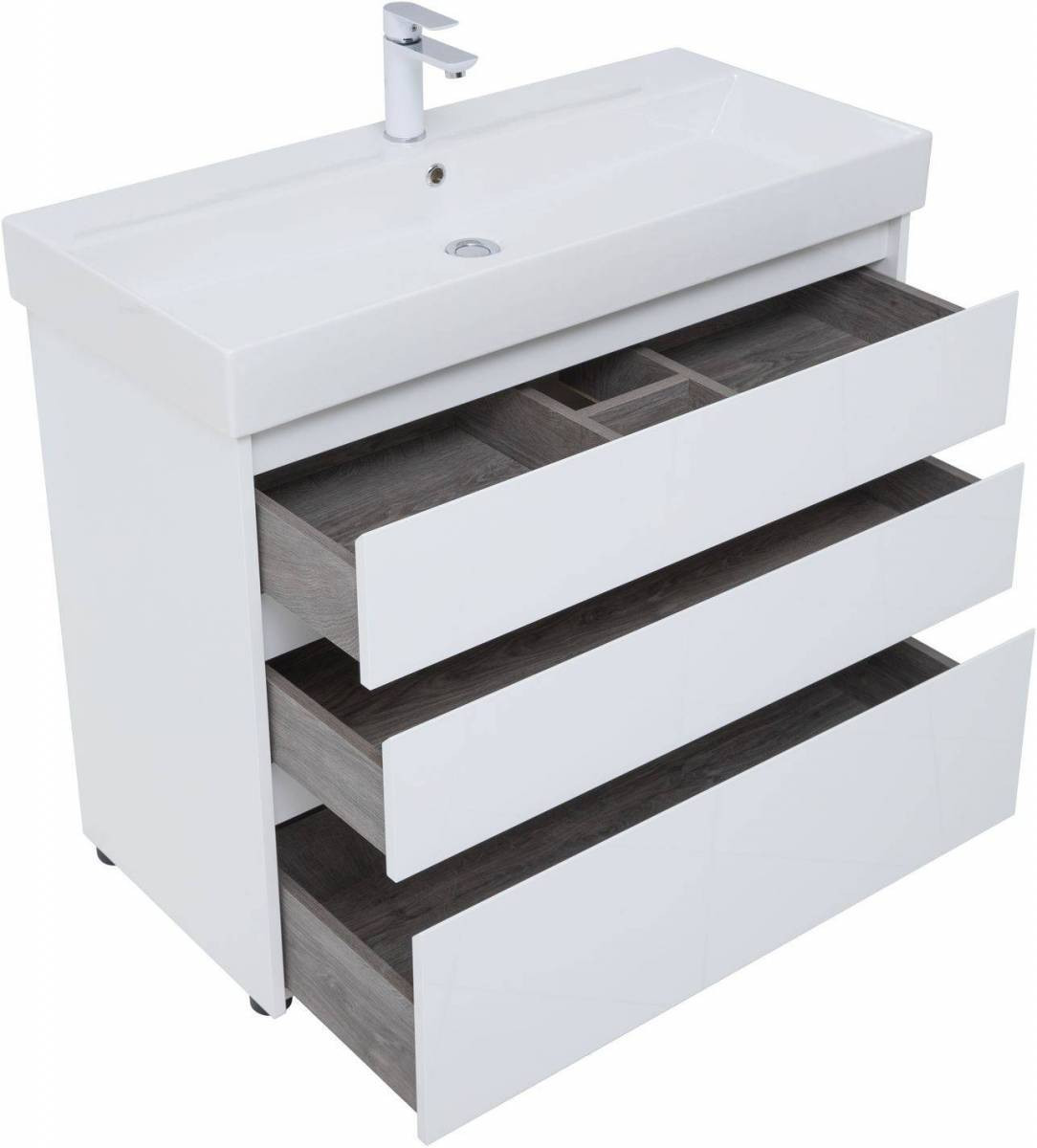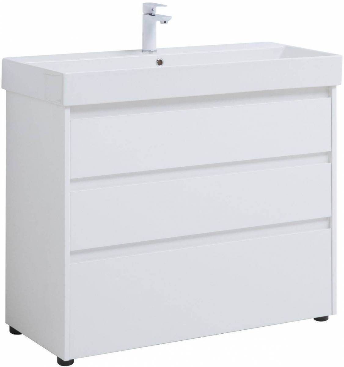 Тумба под раковину (без раковины) Aquanet Nova Lite 100 белый глянец (3 ящика)