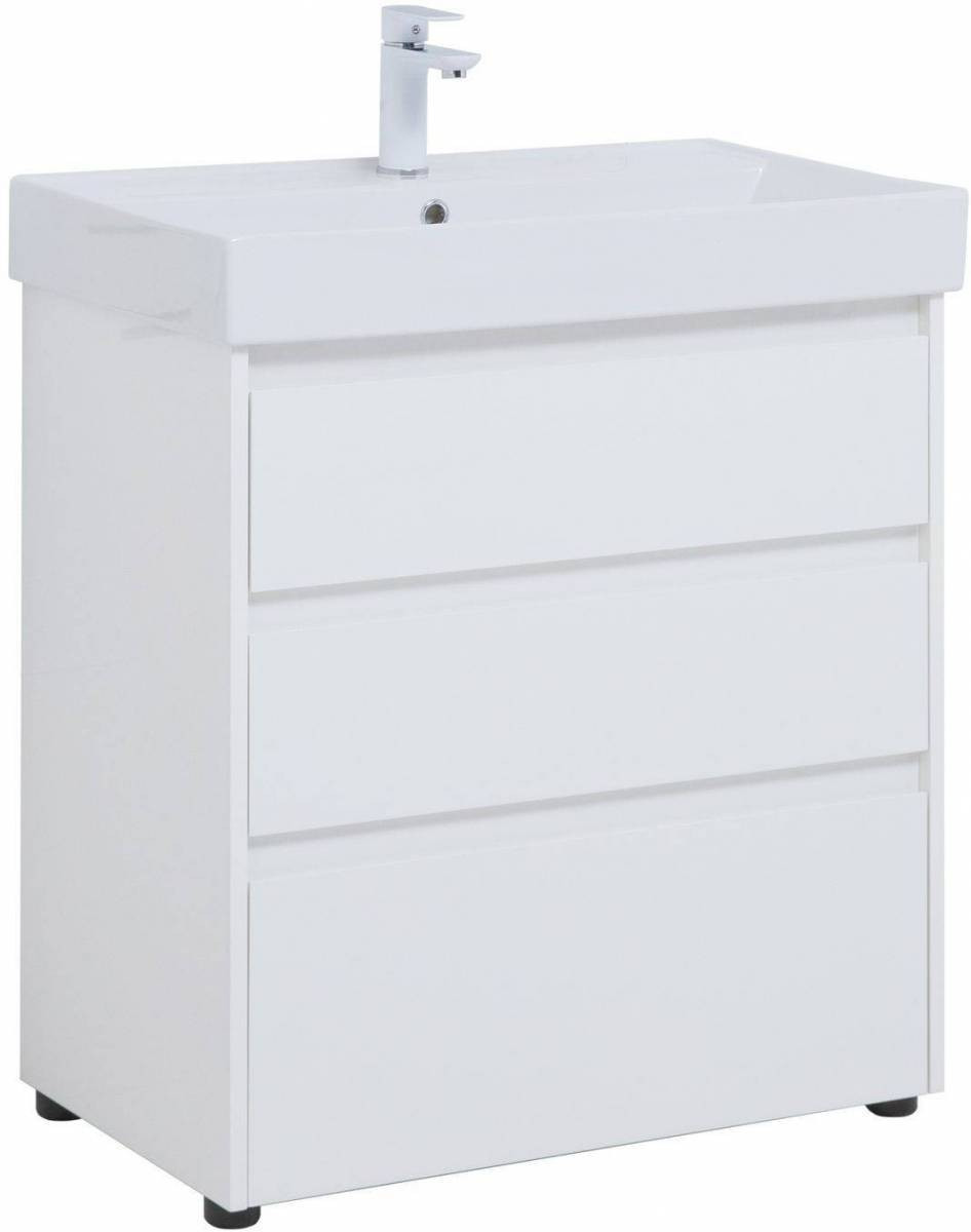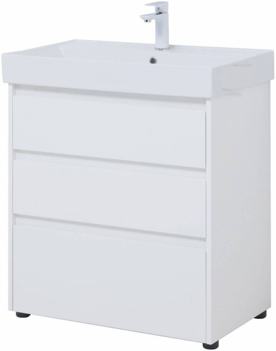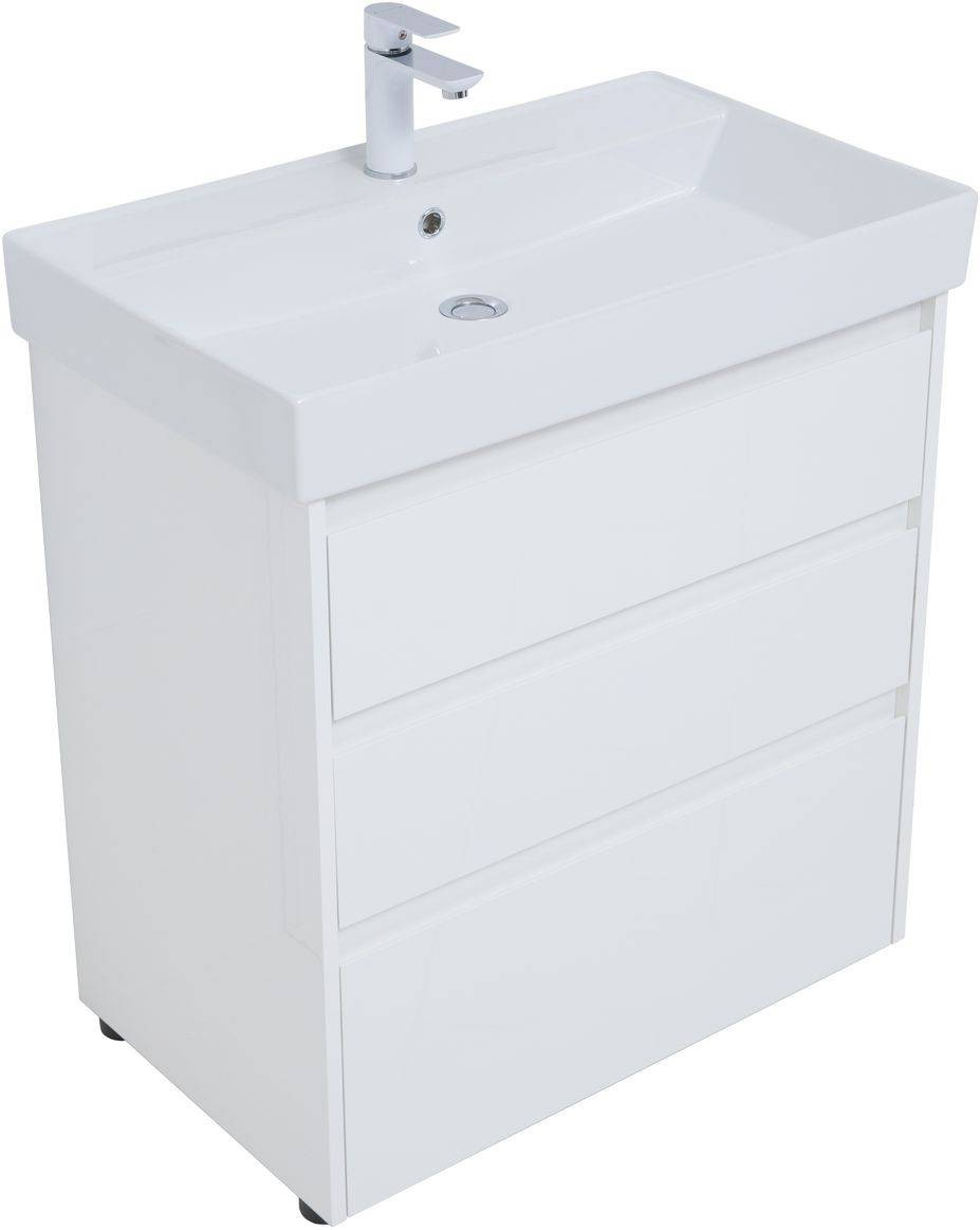 Тумба под раковину (без раковины) Aquanet Nova Lite 75 белый глянец (3 ящика)
