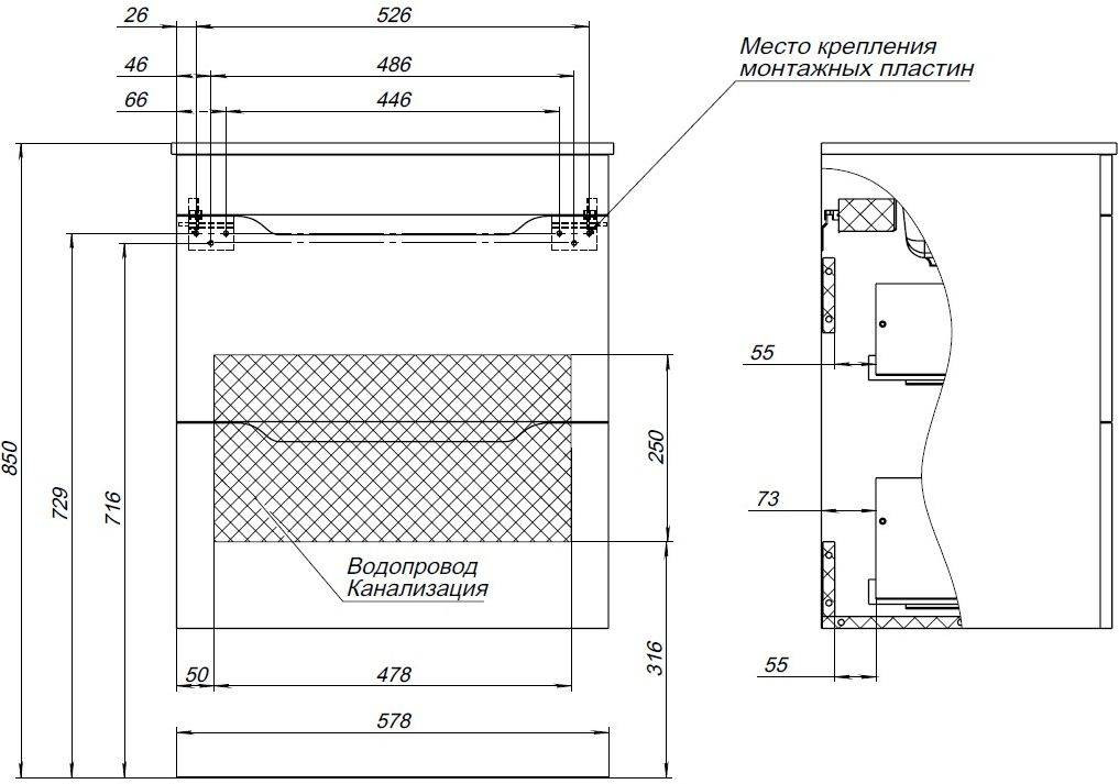 Тумба под раковину (без раковины) Aquanet Практика 60 маренго (2 ящика)