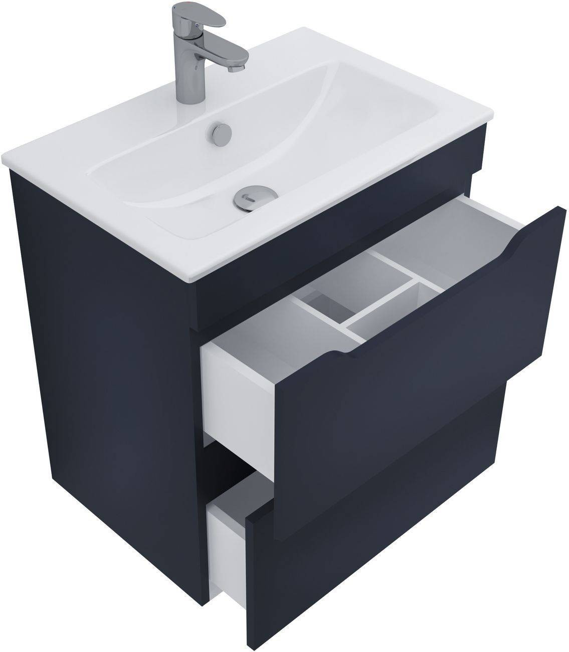 Тумба под раковину покрыта ПВХ пленкой с эффектом Soft touch;