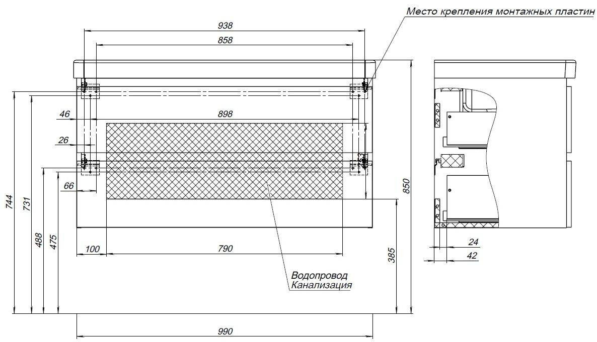 Тумба под раковину (без раковины) Aquanet Вега 100 белый глянец