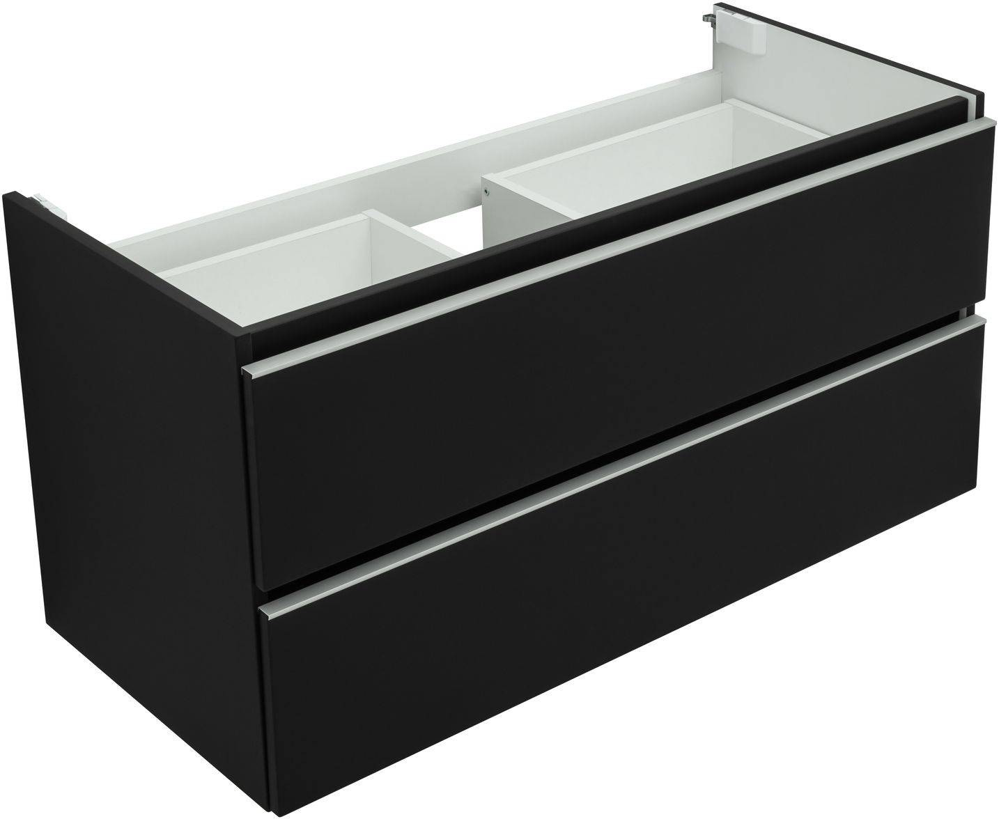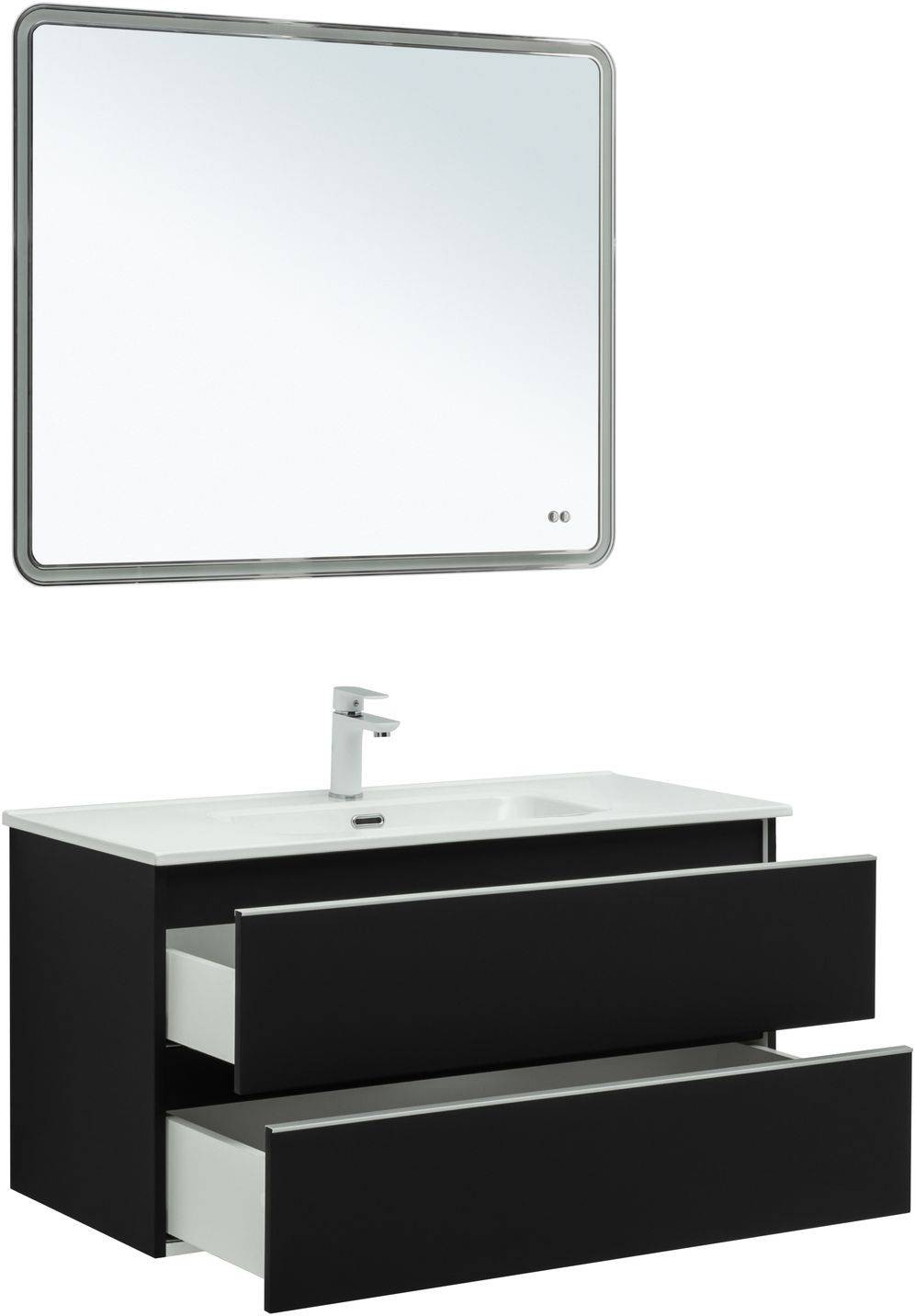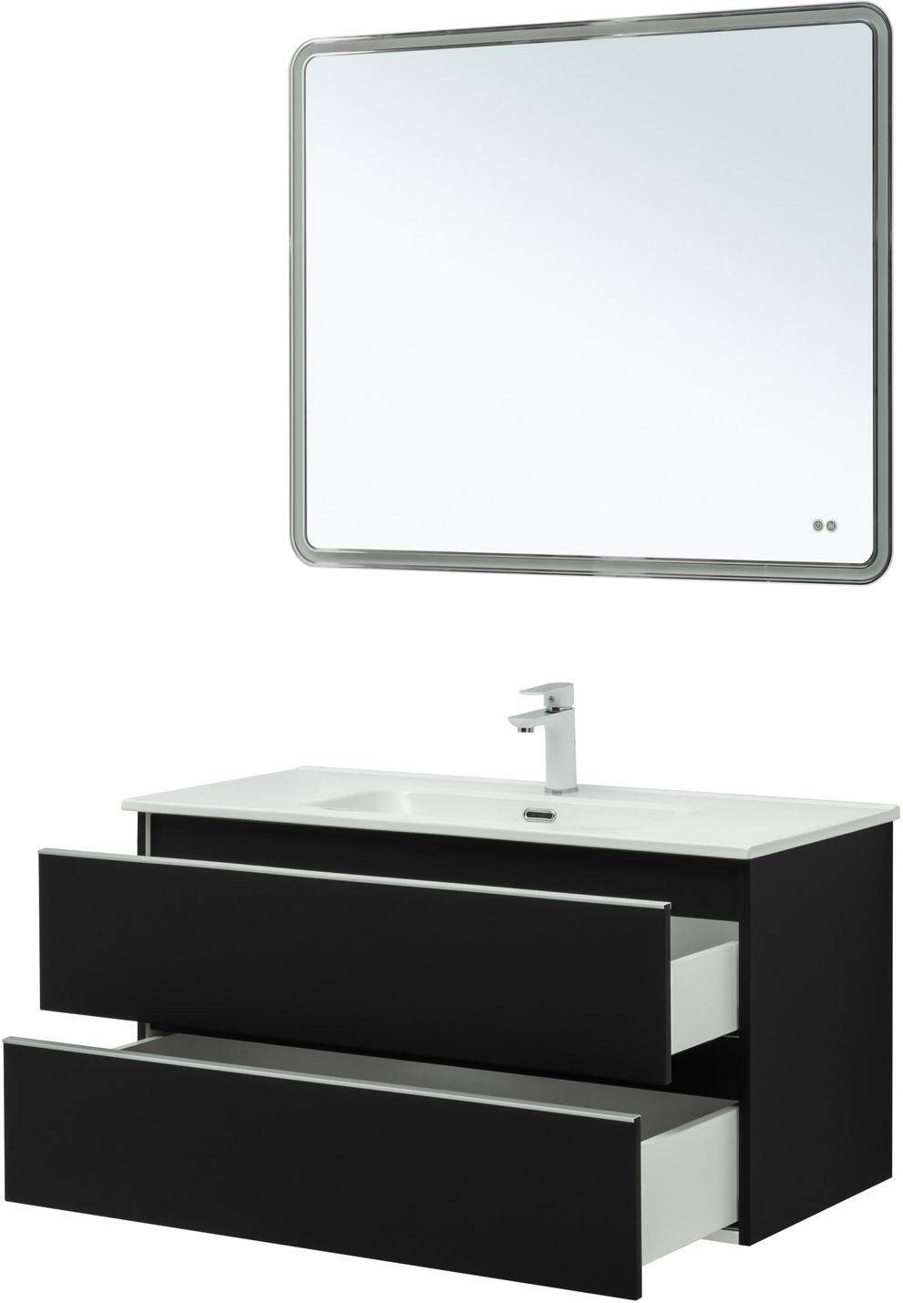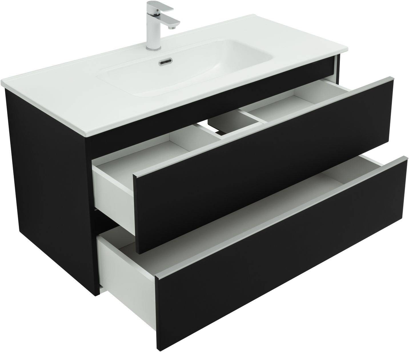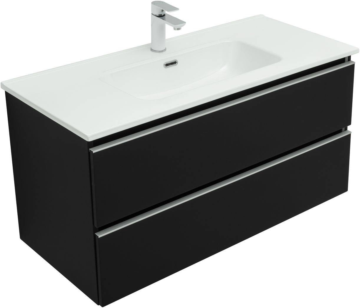 На верхние торцы фасадов дополнительно установлен защитный металлический профиль в цвете серебро. Тумба под раковину Aquanet Вега 100 черный предлагает не только стильное исполнение, но и практичность в использовании.