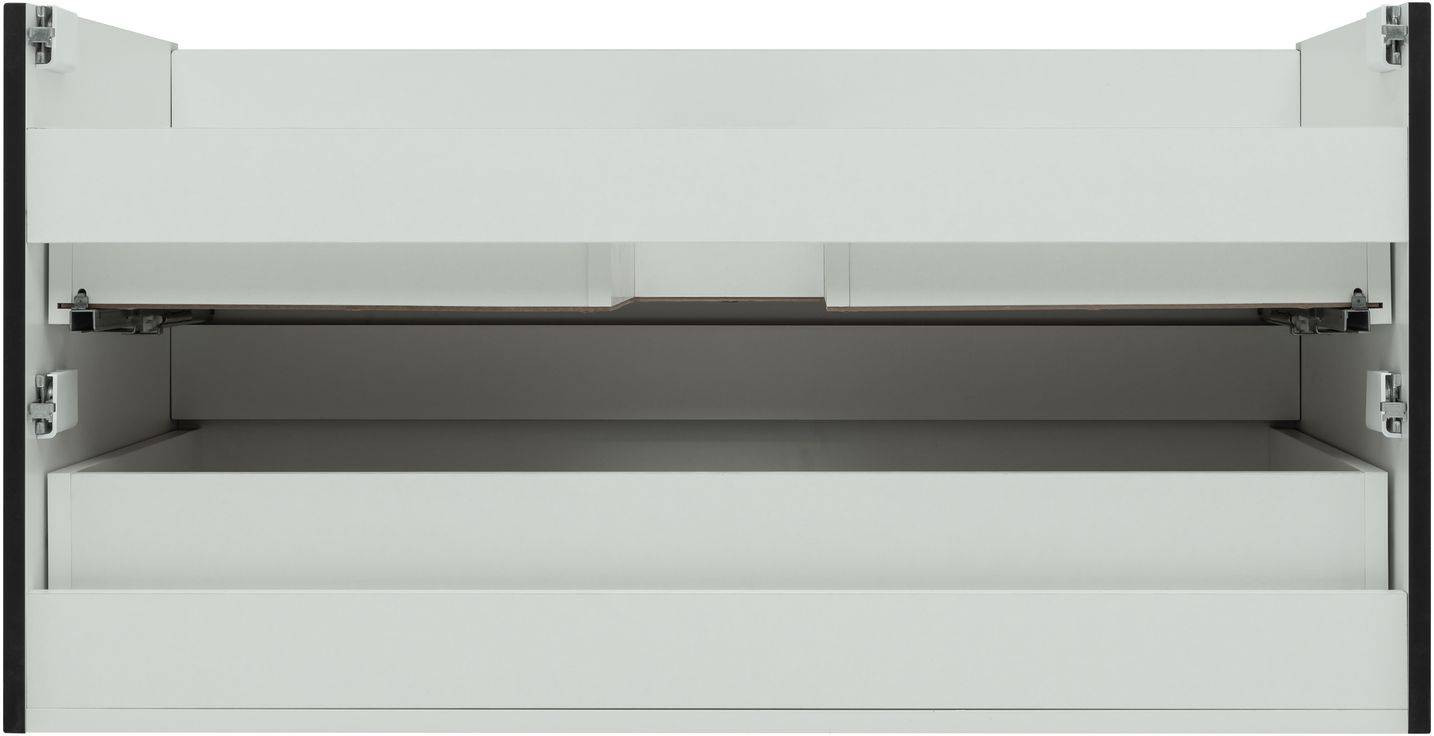 Внутренние детали изготовлены из влагостойкой ЛДСП белого цвета, что обеспечивает не только эстетичный вид, но и долговечность конструкции на долгие годы использования. Погрузитесь в мир изысканности и удобства с тумбой под раковину Aquanet Вега 100 черный - идеальным выбором для вашей ванной комнаты.
