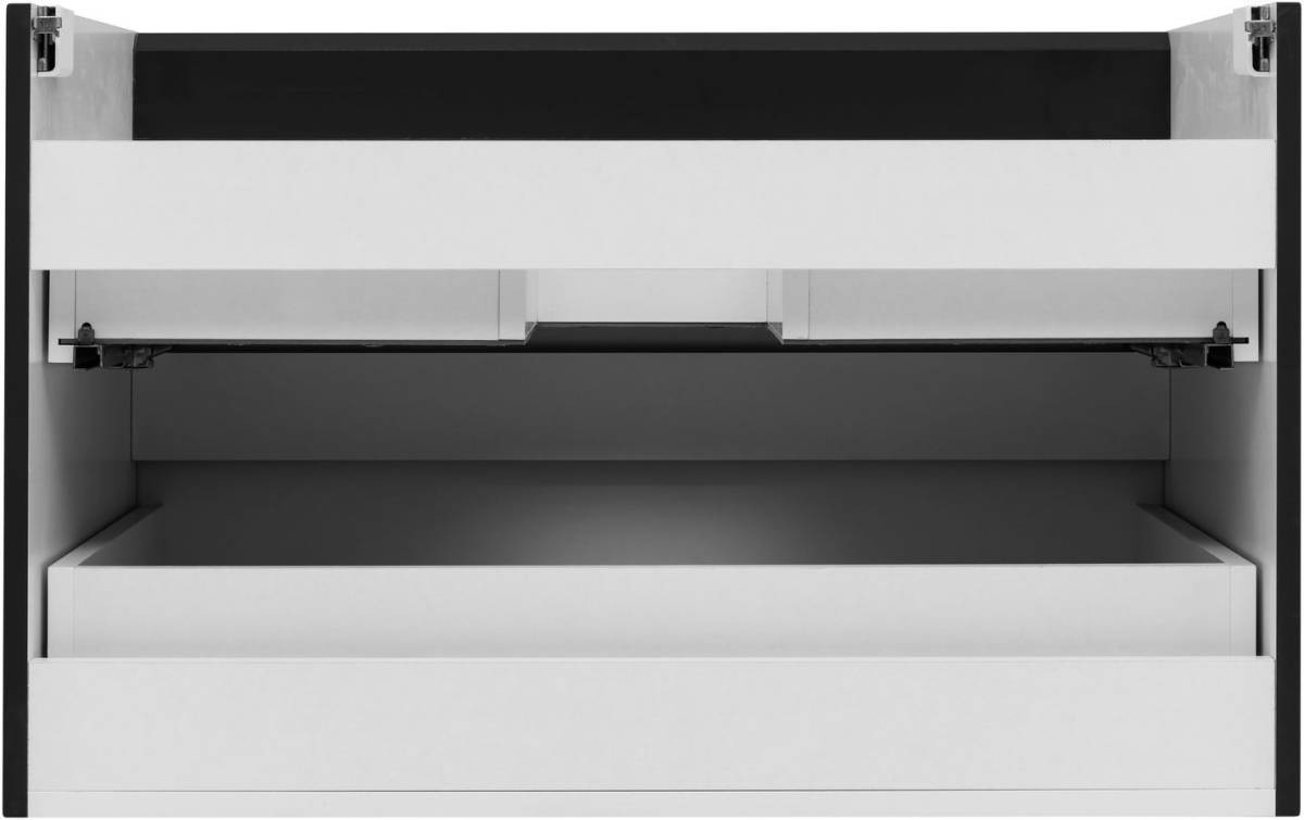 Фасады и корпуса из суперматовой пленки ПВХ обладают повышенной прочностью и эффектом «Soft touch», обеспечивая не только прекрасный внешний вид, но и приятные тактильные ощущения. Тумба оснащена двумя ящиками с механизмом доводчика, что обеспечивает плавное и бесшумное закрытие, а также высокую функциональность.