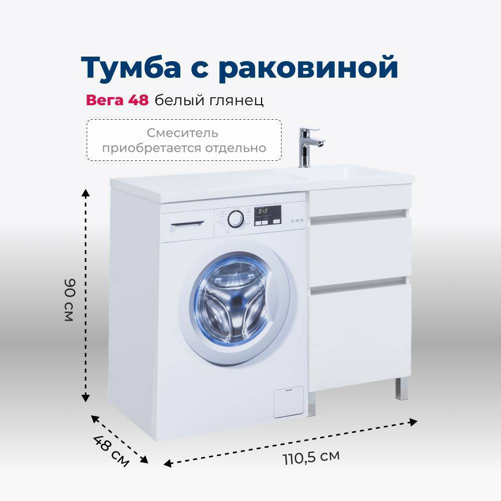 Тумба под раковину (Без раковины) Aquanet Вега 48 белый глянец