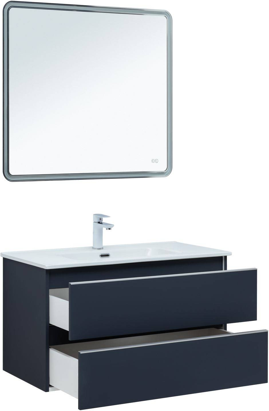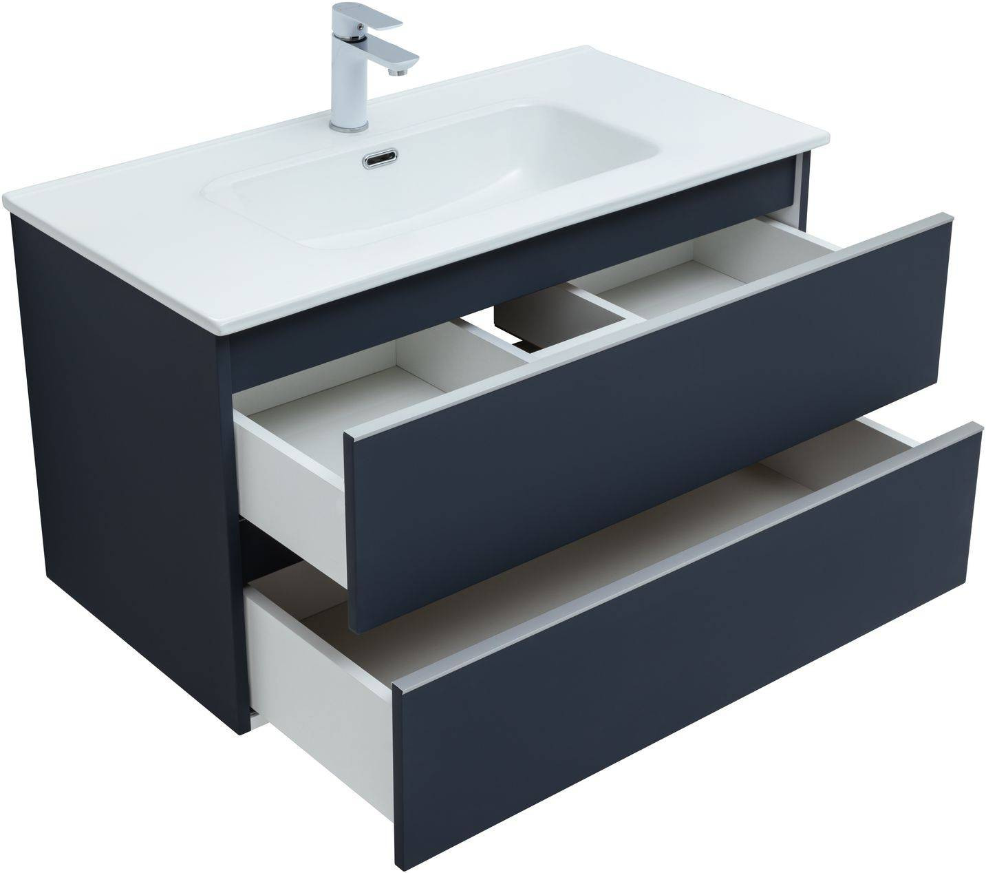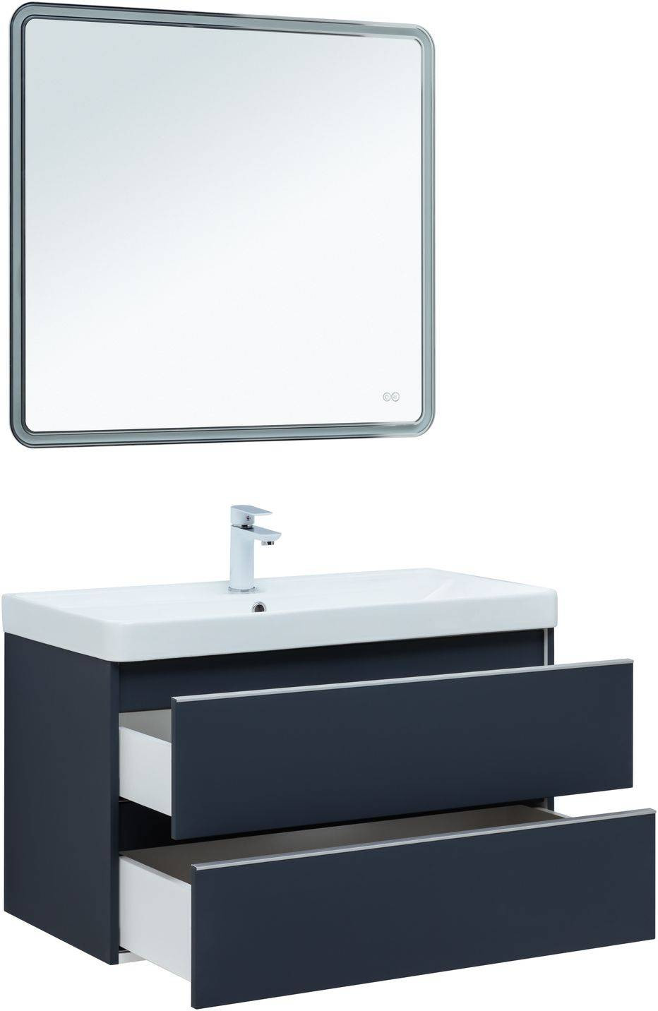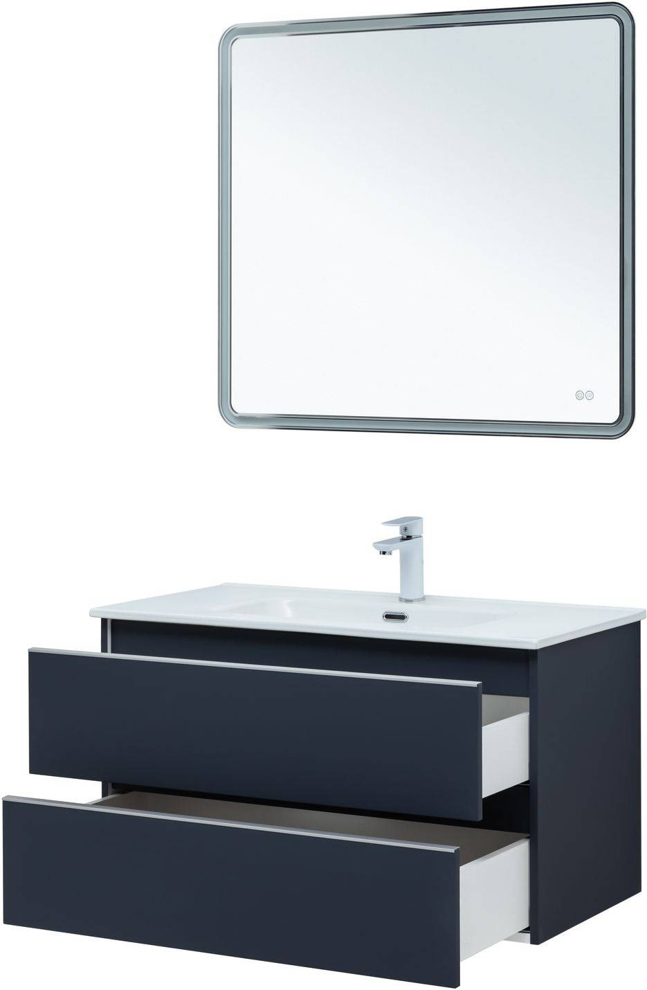 Тумба под раковину покрыта ПВХ пленкой с эффектом Soft touch;