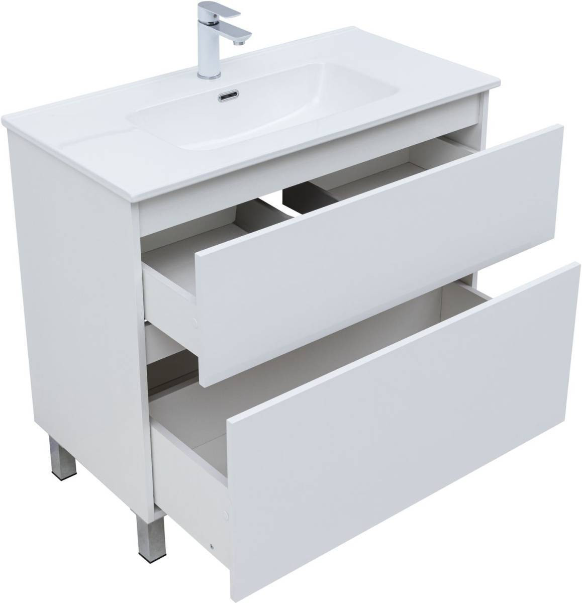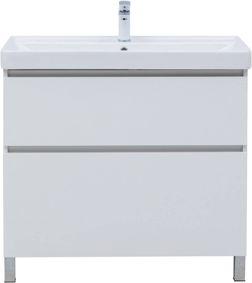 Тумба под раковину (Без раковины) Aquanet Вега 90 напольная, белый глянец