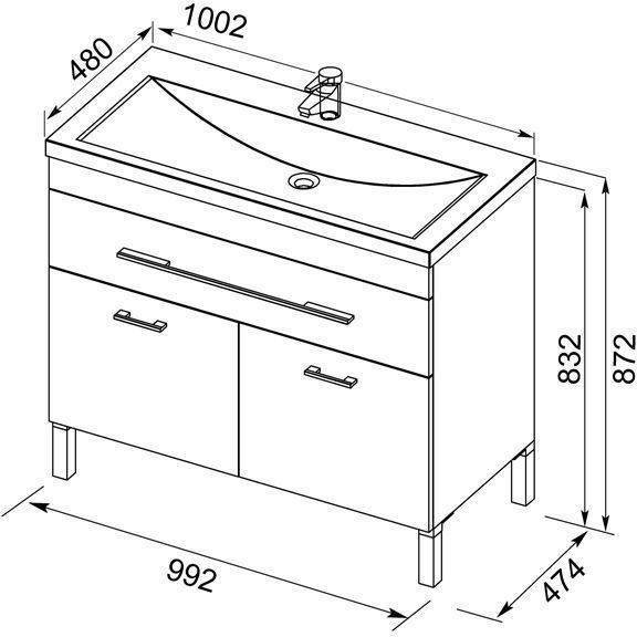 Тумба под раковину (без раковины) Aquanet Верона 100 белый (напольная 1 ящик 2 дверцы)