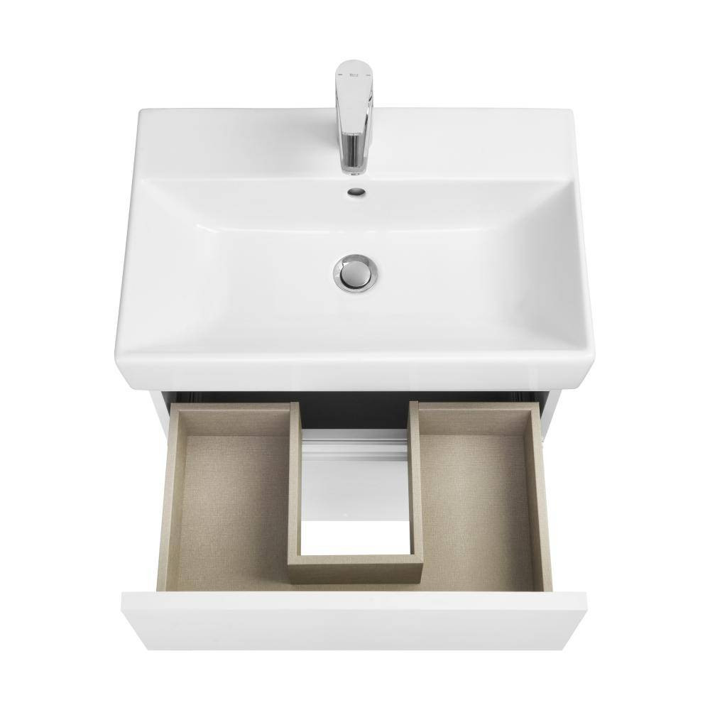 2 выдвижных ящика тумбы установлены на направляющие Hettich, которые гарантируют продолжительную безупречную функциональность и максимальный комфорт эксплуатации. Скрытый монтаж не портит элегантный дизайн мебели, а возможность полного выдвижения обеспечит быстрый доступ к необходимым предметам. Внутренняя отделка ящиков выполнена в цвете бежевый текстиль, приятна на ощупь и предотвращает скольжение предметов. Профильная ручка во всю ширину фасада удобна в использовании и позволяет сочетать мебель Oleta c различными цветами смесителей и аксессуаров для ванной комнаты. Ручка выполнена в виде J-профиля.
