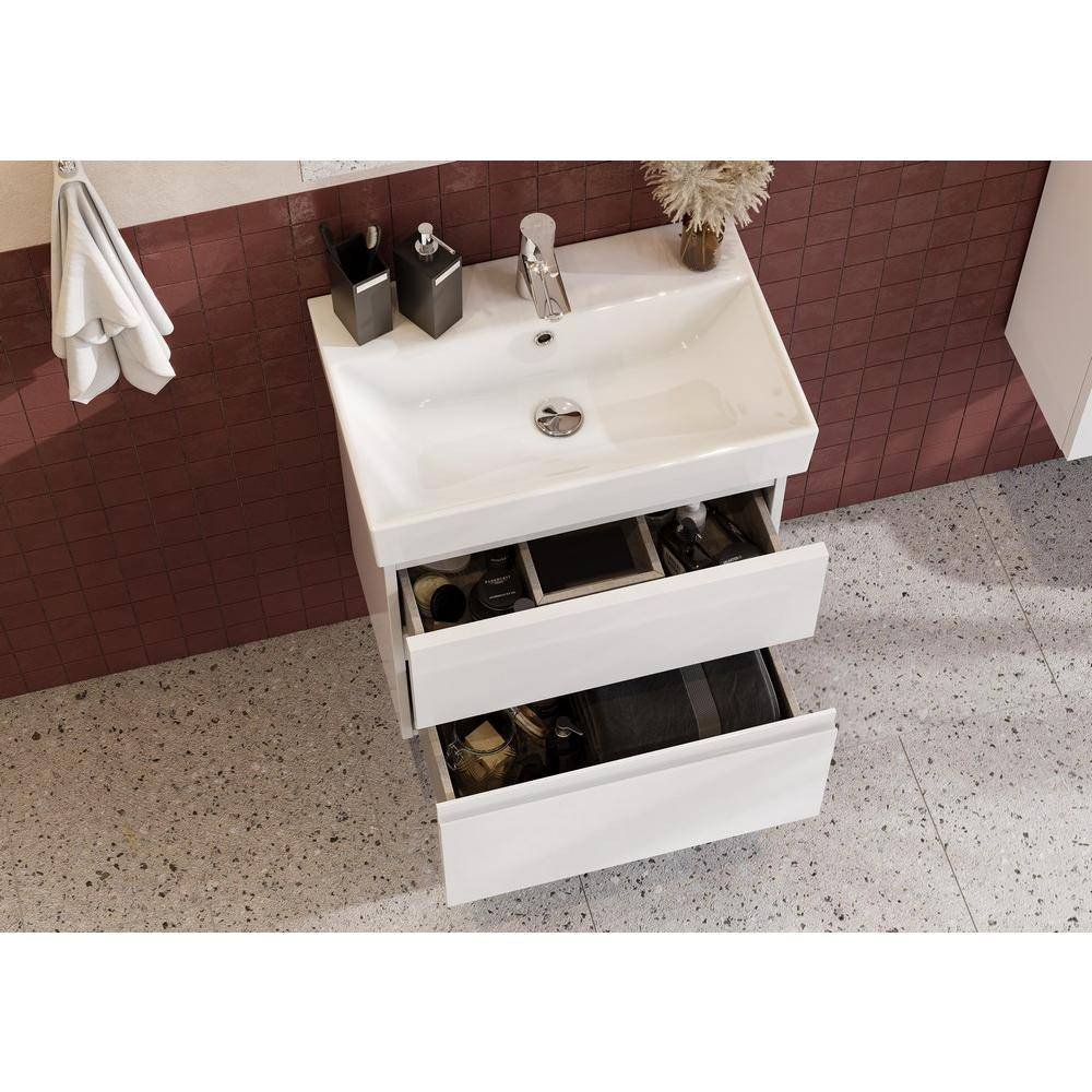 2 выдвижных ящика тумбы установлены на направляющие Hettich, которые гарантируют продолжительную безупречную функциональность и максимальный комфорт эксплуатации. Скрытый монтаж не портит элегантный дизайн мебели, а возможность полного выдвижения обеспечит быстрый доступ к необходимым предметам. Внутренняя отделка ящиков выполнена в цвете бежевый текстиль, приятна на ощупь и предотвращает скольжение предметов. Профильная ручка во всю ширину фасада удобна в использовании и позволяет сочетать мебель Oleta c различными цветами смесителей и аксессуаров для ванной комнаты. Ручка выполнена в виде J-профиля.