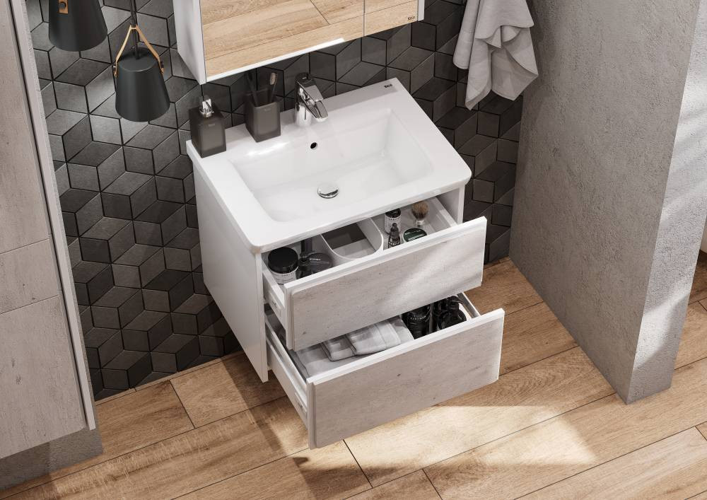 Тумба под раковину ROCA RONDA 57,7 ZRU9303002 (подвесная, белый матовый/бетон)
