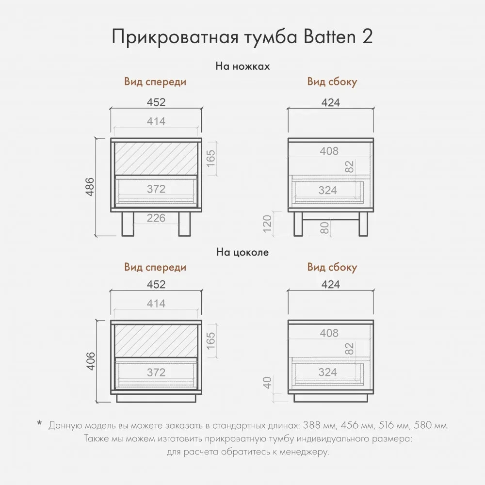 Вы можете заказать тумбу в одной из 6 стандартных тонировок древесины или выбрать цвет из уникальной палитры отделок с патиной. Также вы можете заказать тумбу в индивидуальном размере.