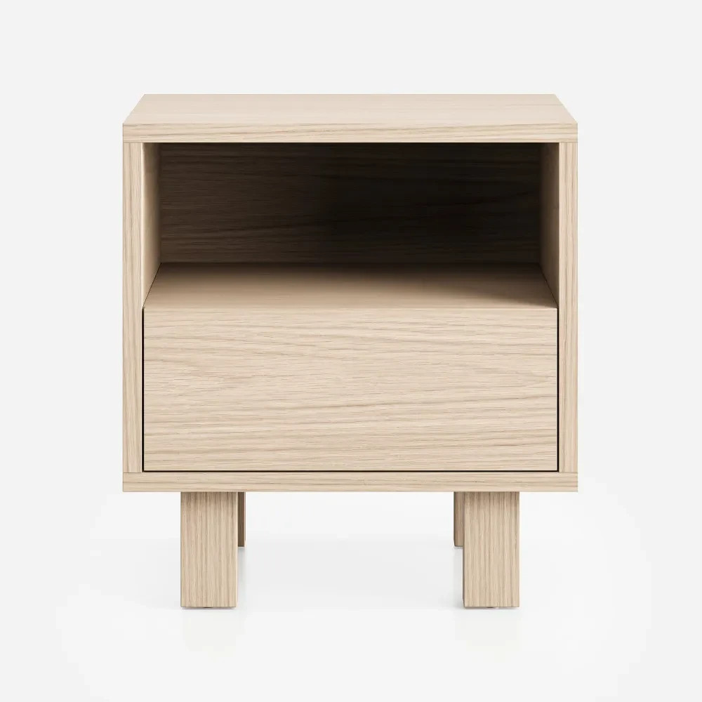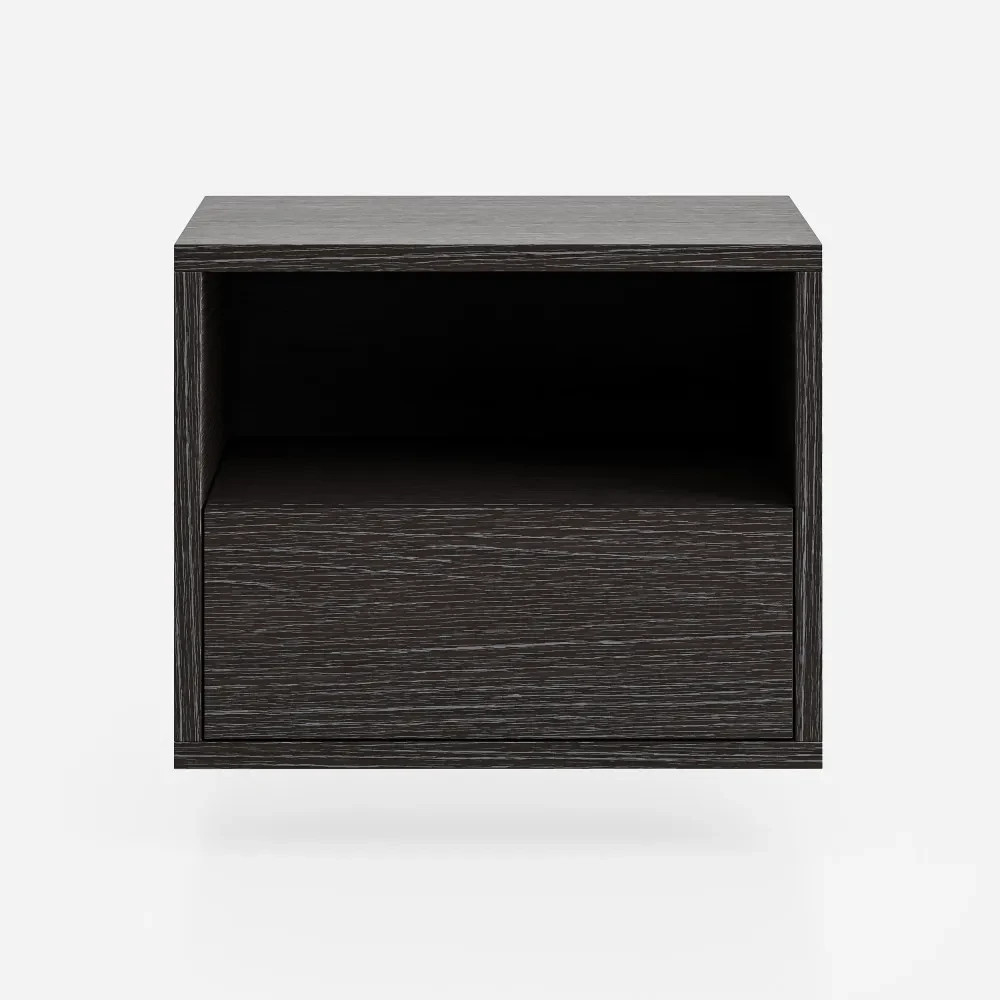 Подвесная прикроватная тумба Japandi выполнена из натурального шпона европейского дуба, ее образ объединяет минимализм, функциональность и элегантность скандинавского дизайна с утонченной простотой, характерной для японской эстетики.