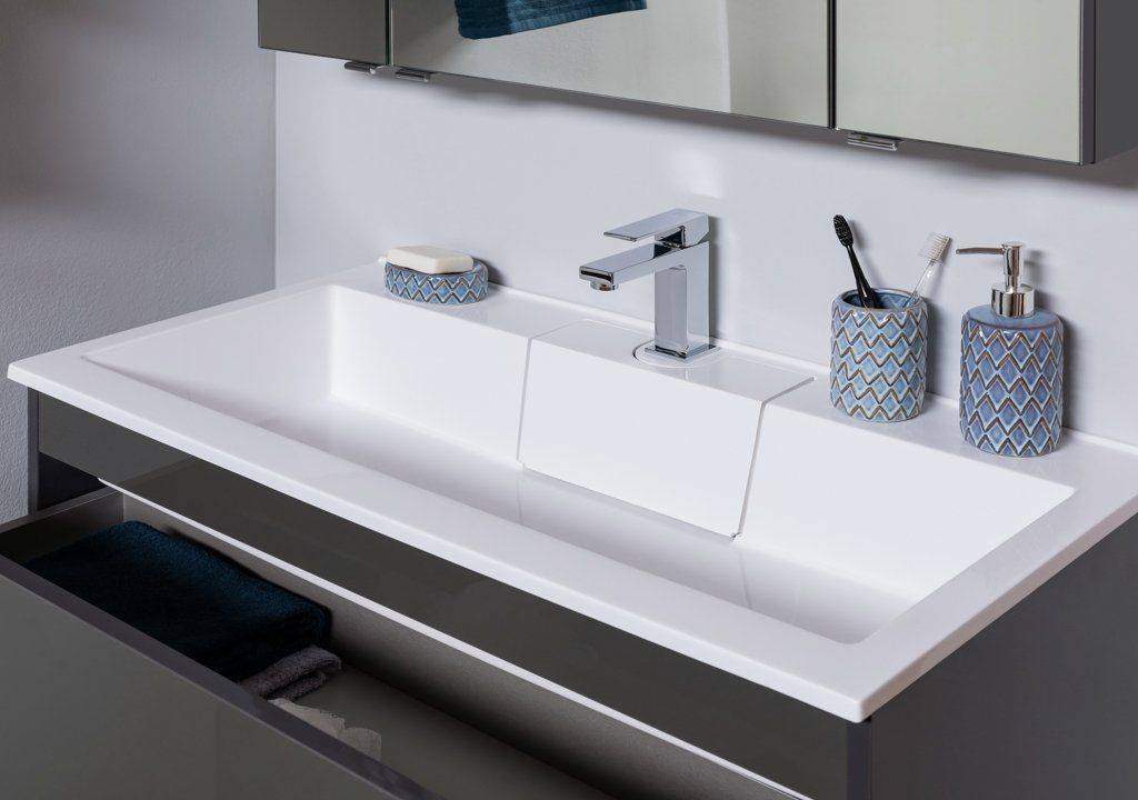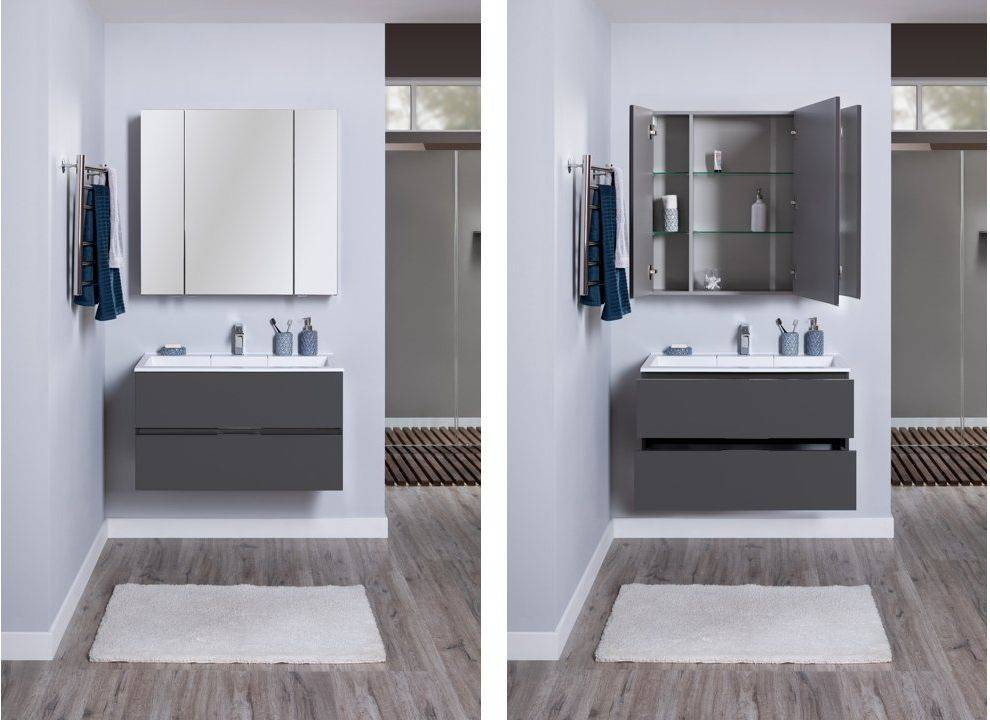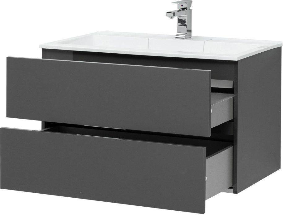 Тумба с раковиной Акванет Алвита в цвете "серый антрацит" шириной 90 см придаст интерьеру ванной комнаты нотку особого очарования и уникальности, благодаря своей нестандартной красивой отделке. Покрытие имеет высокие эксплуатационные характеристики, в частности, влагонепроницаемость, прочность и простоту в уходе. Современный дизайн демонстрирует аккуратный минимализм геометрически четких форм, где основная идея подчинена максимальной функциональности. Вместительная тумба с верхним и нижним выдвижными ящиками создает дополнительное пространство, где будут надежно скрыты от влаги банные принадлежности. Ящики тумбы закрываются легко и бесшумно, благодаря механизму доводчика. Тумба комплектуется раковиной из литьевого мрамора «Фортуна», которая имеет уникальную конструкцию слива: вместо привычного расположения по центру, он находится в скрытом отсеке под съемной крышкой. Смещение слива и сифона к стене, в сторону канализационного отвода, избавляет от необходимости менять устройство верхнего ящика тумбы и делать в нем выемку. Теперь он свободно передвигается под раковиной и имеет большую вместимость.