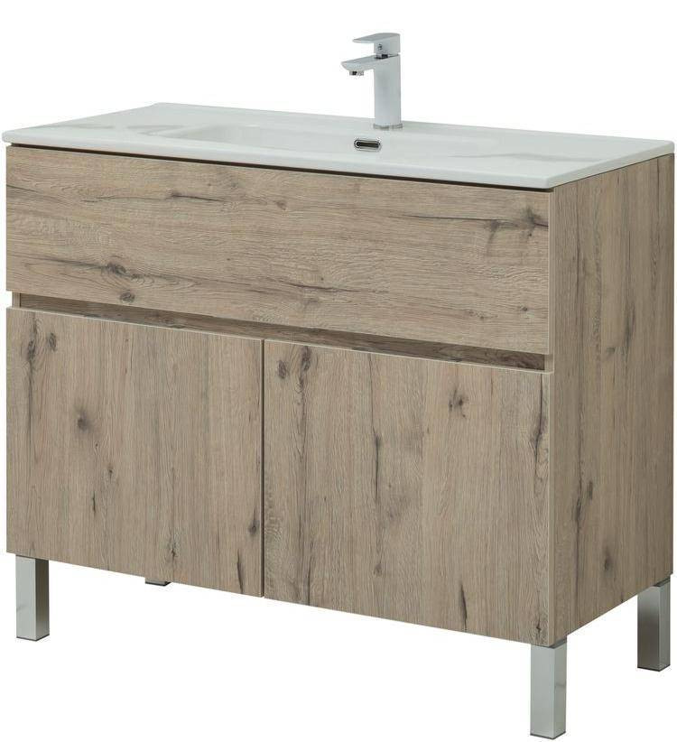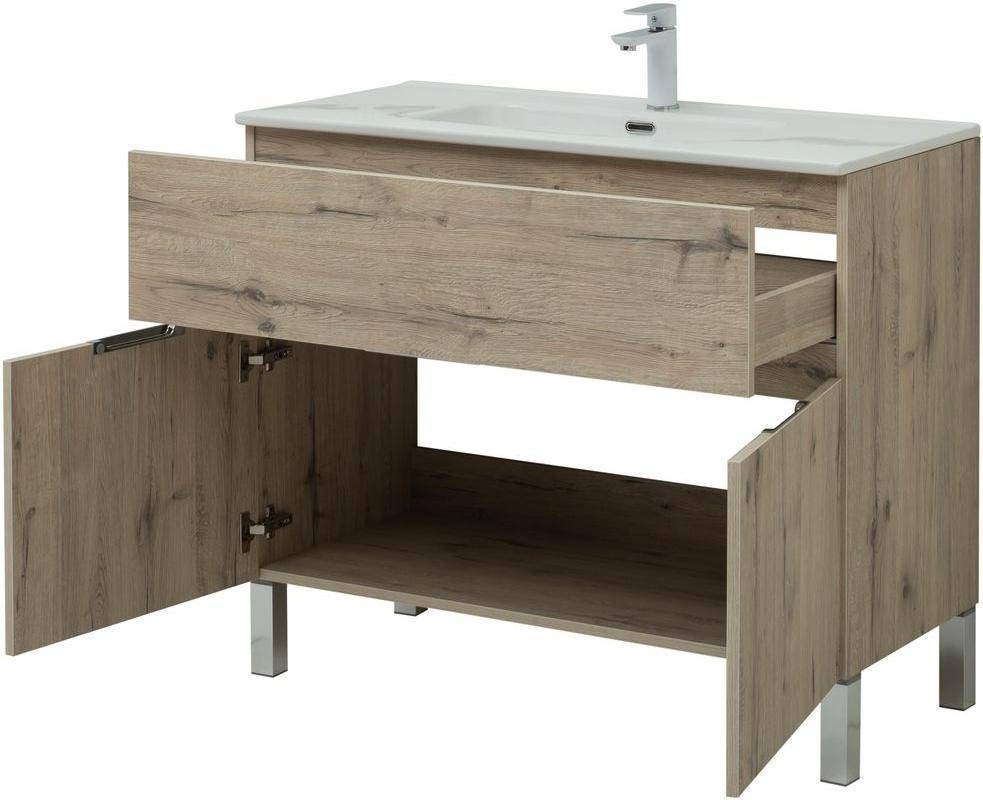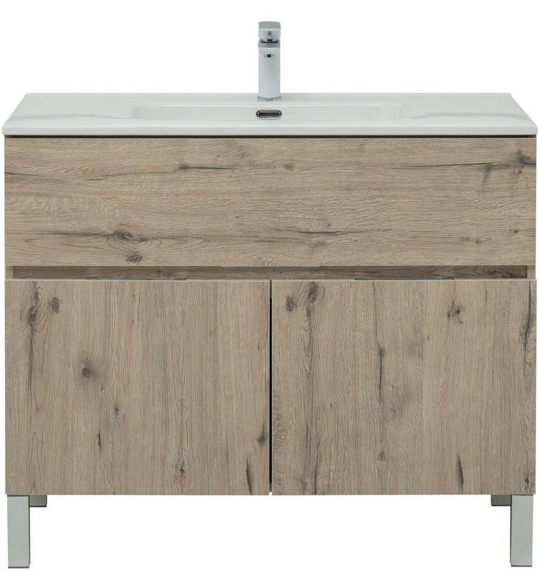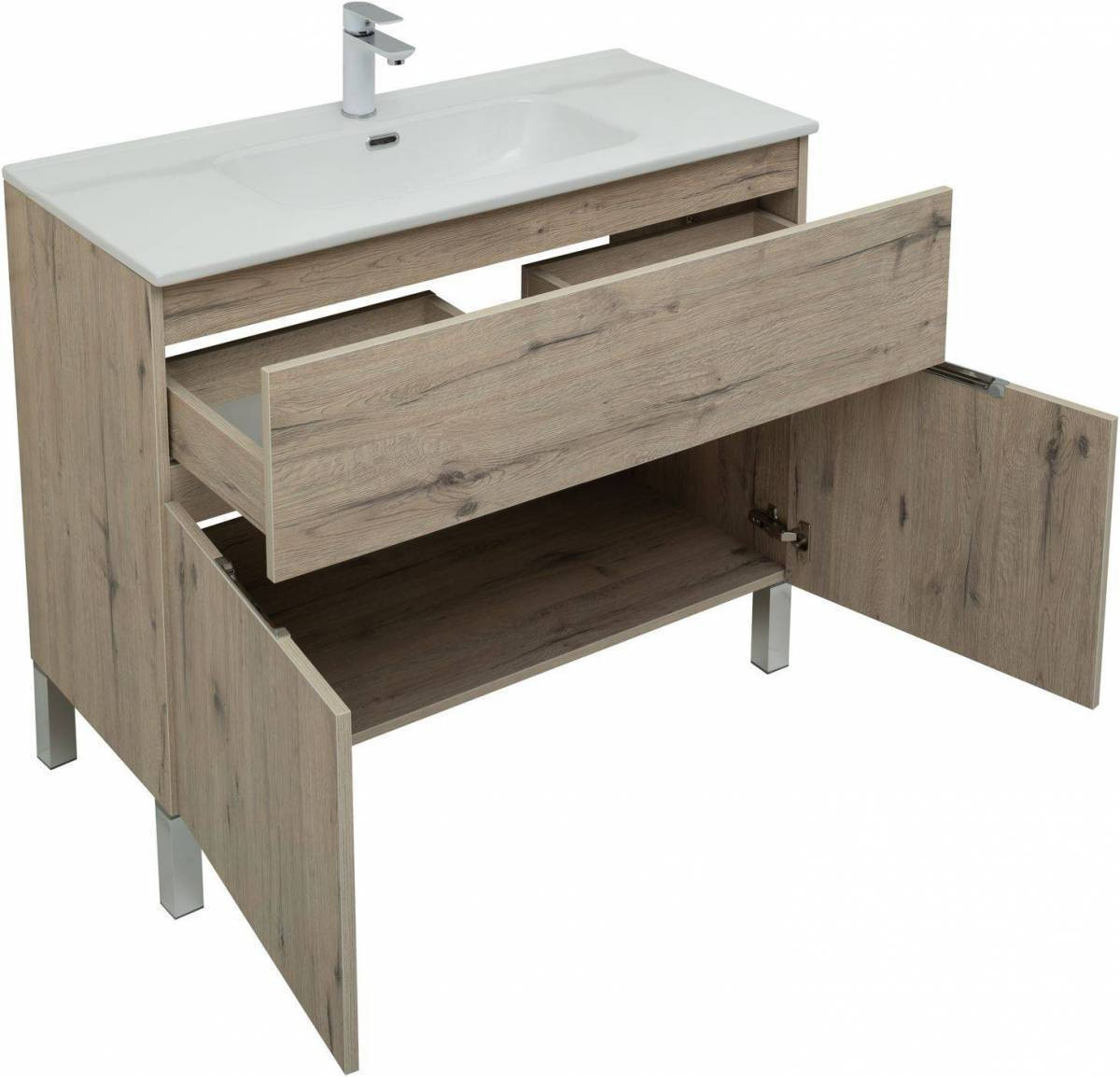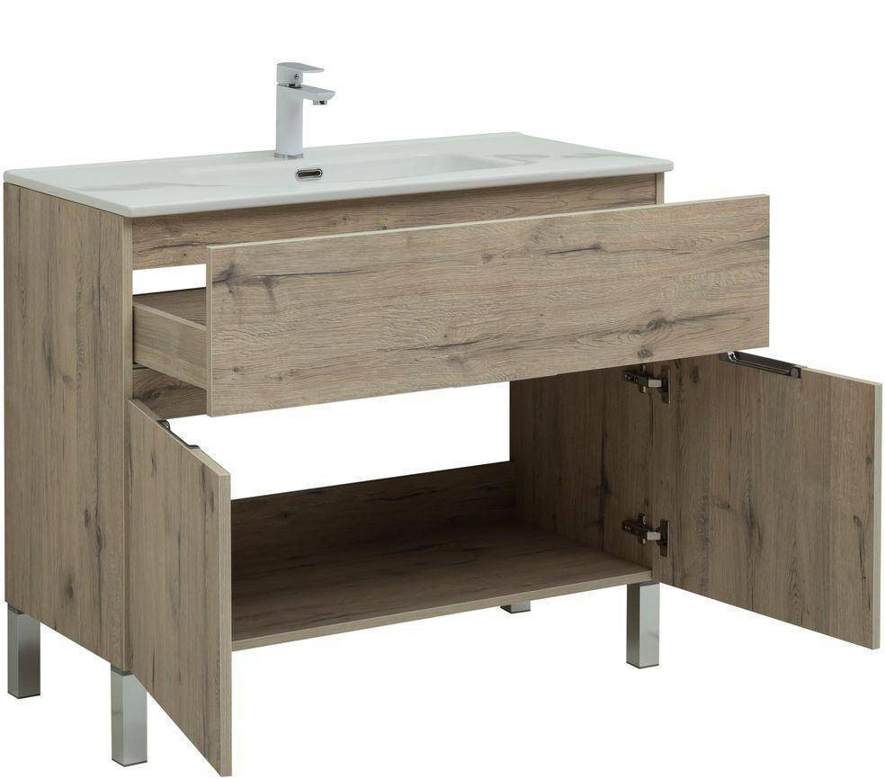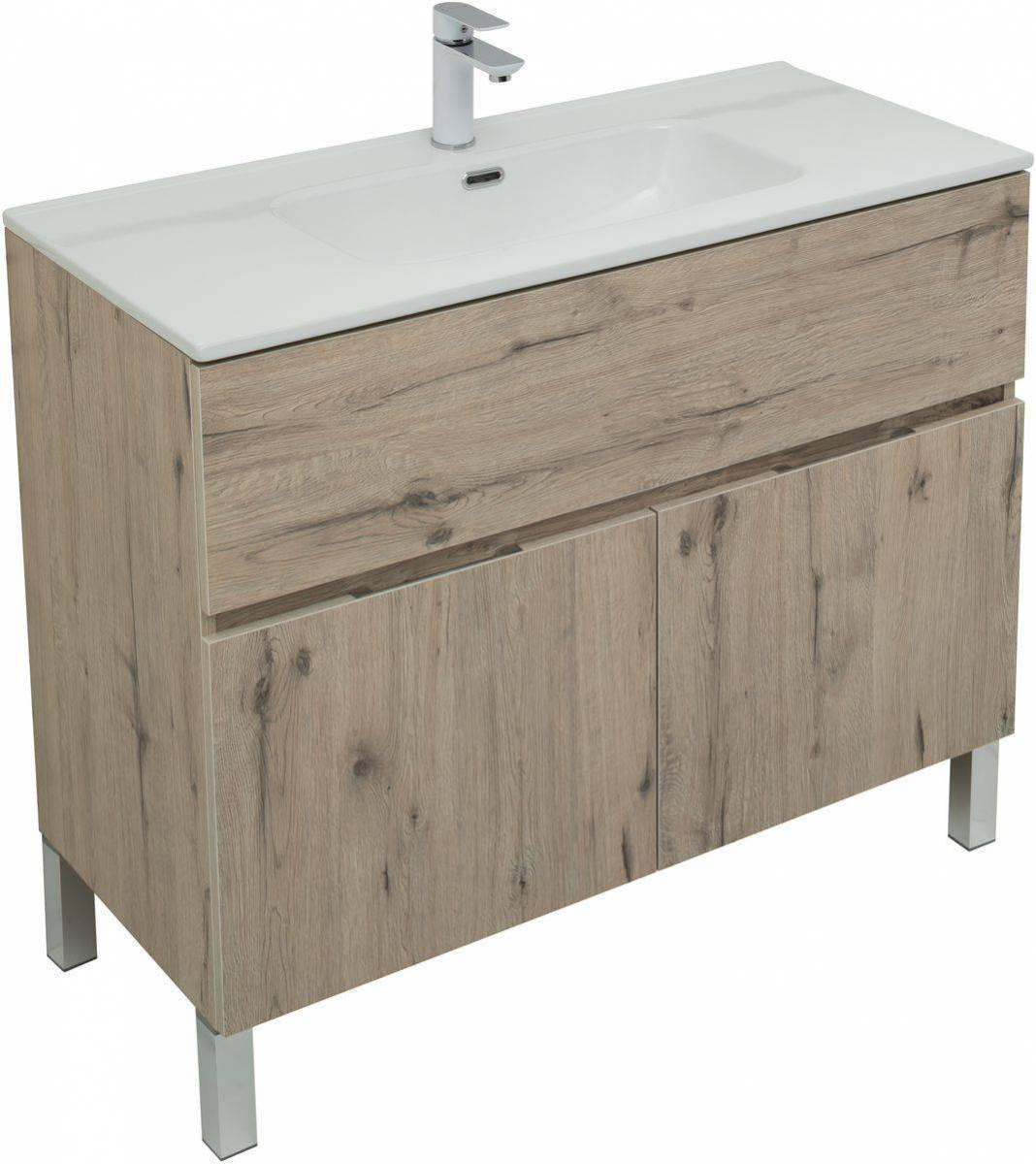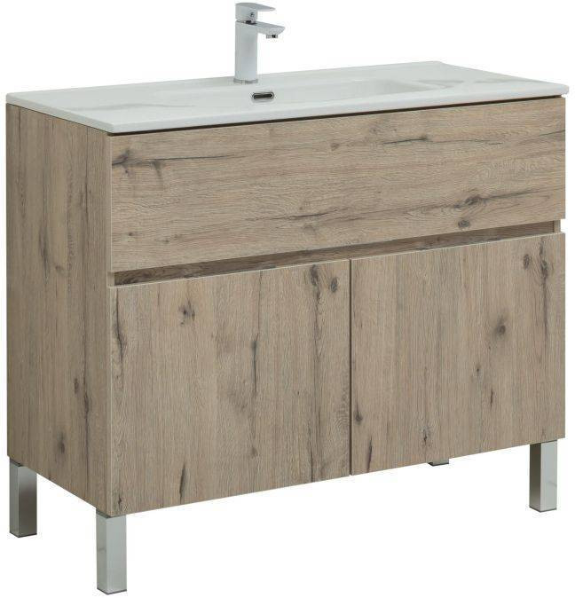 Тумба с раковиной Aquanet Алвита New 100 1 ящик, 2 дверцы, дуб веллингтон белый
