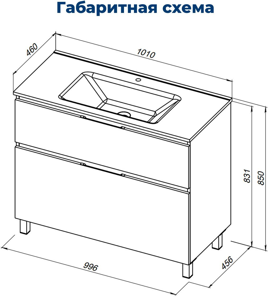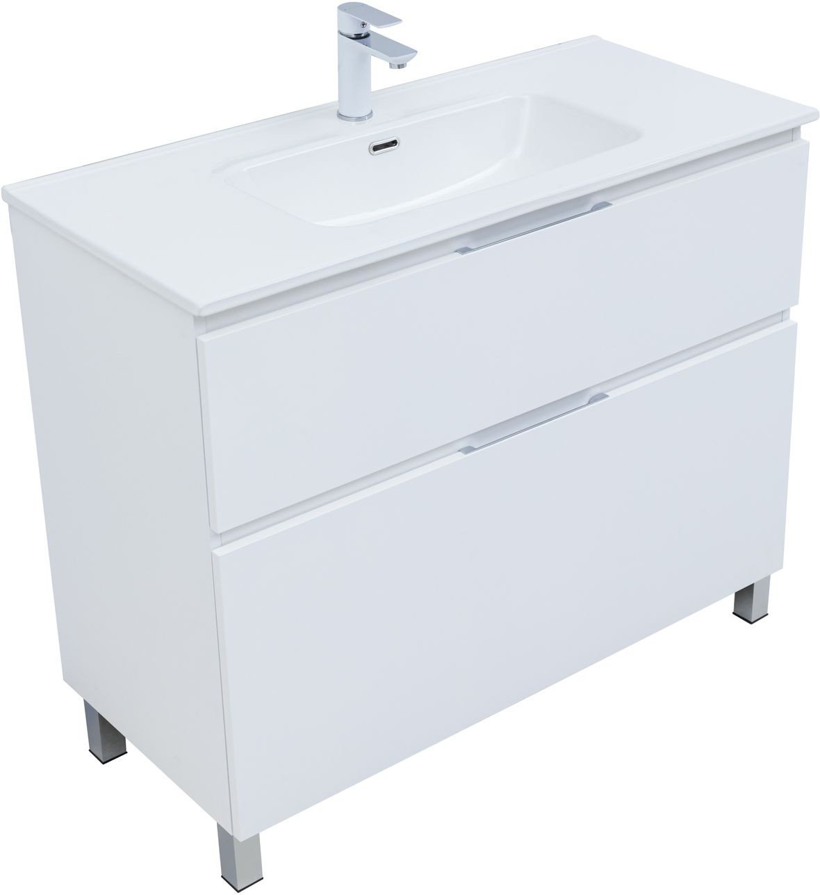 Тумба с раковиной Aquanet Алвита new 100 (Flash) напольная 2 ящ. цв. белый матовый