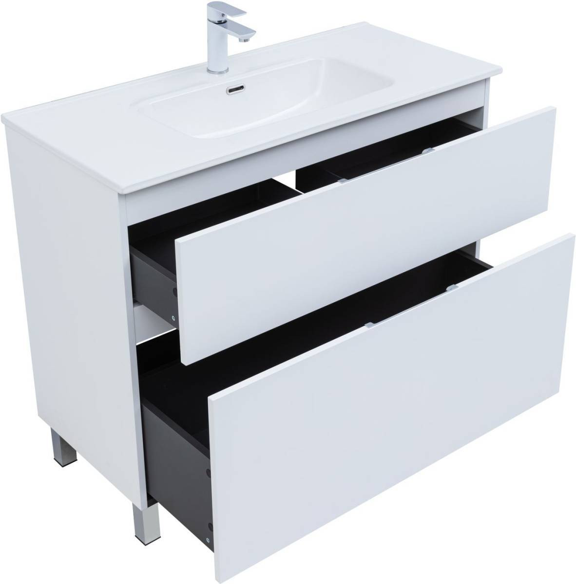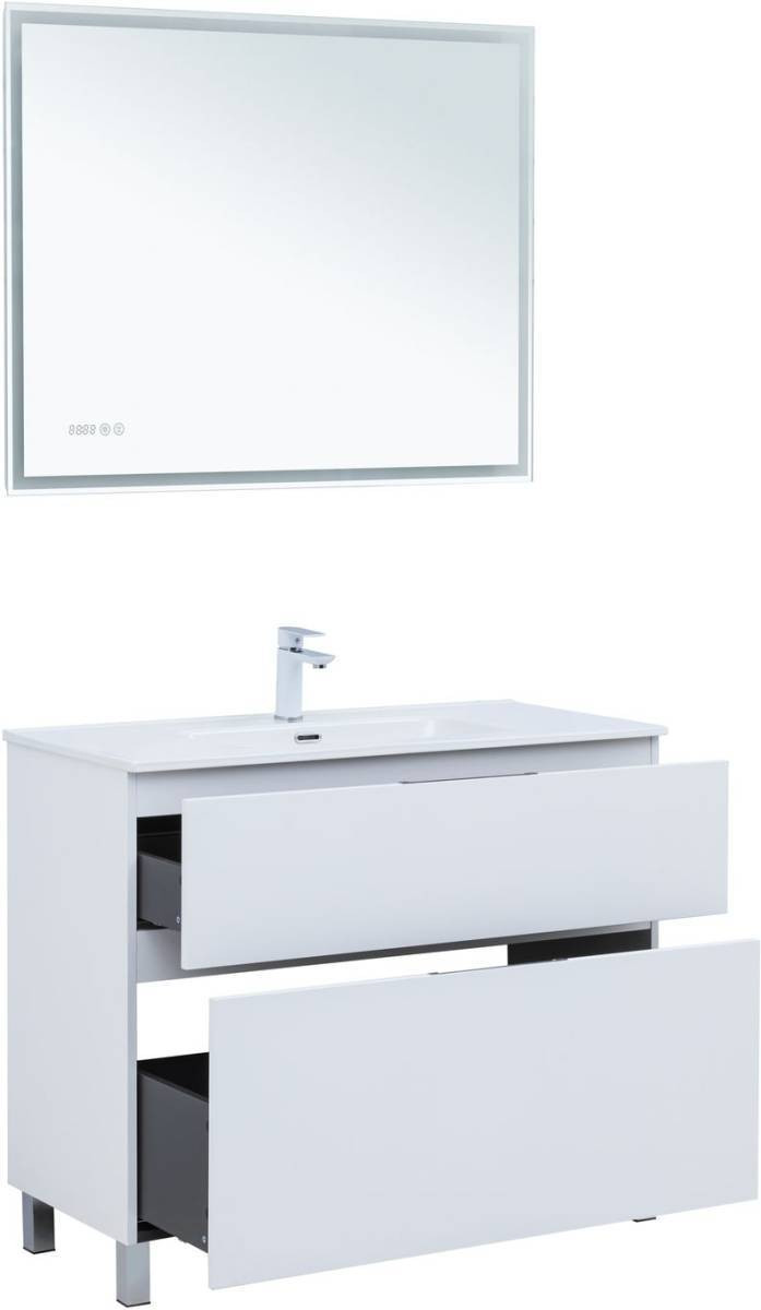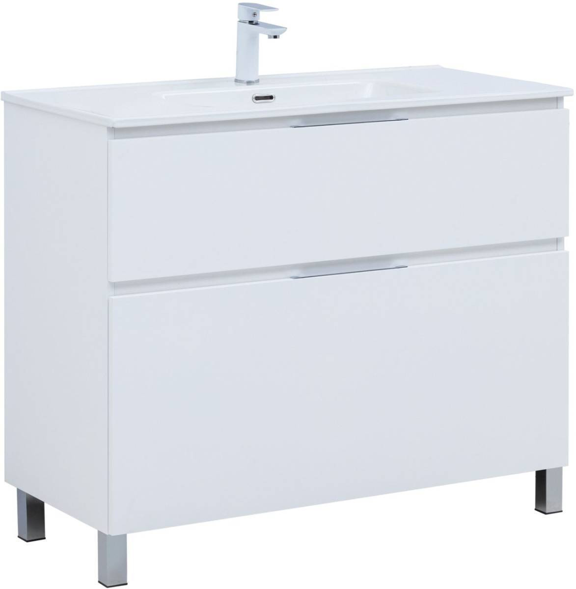 Тумба с раковиной Aquanet Алвита New 100 напольная, белый матовый + раковина Flash