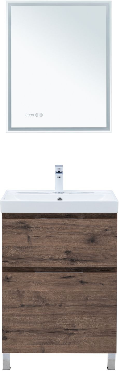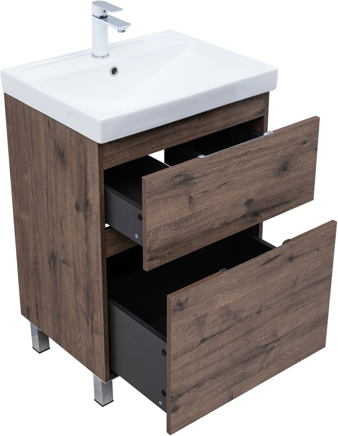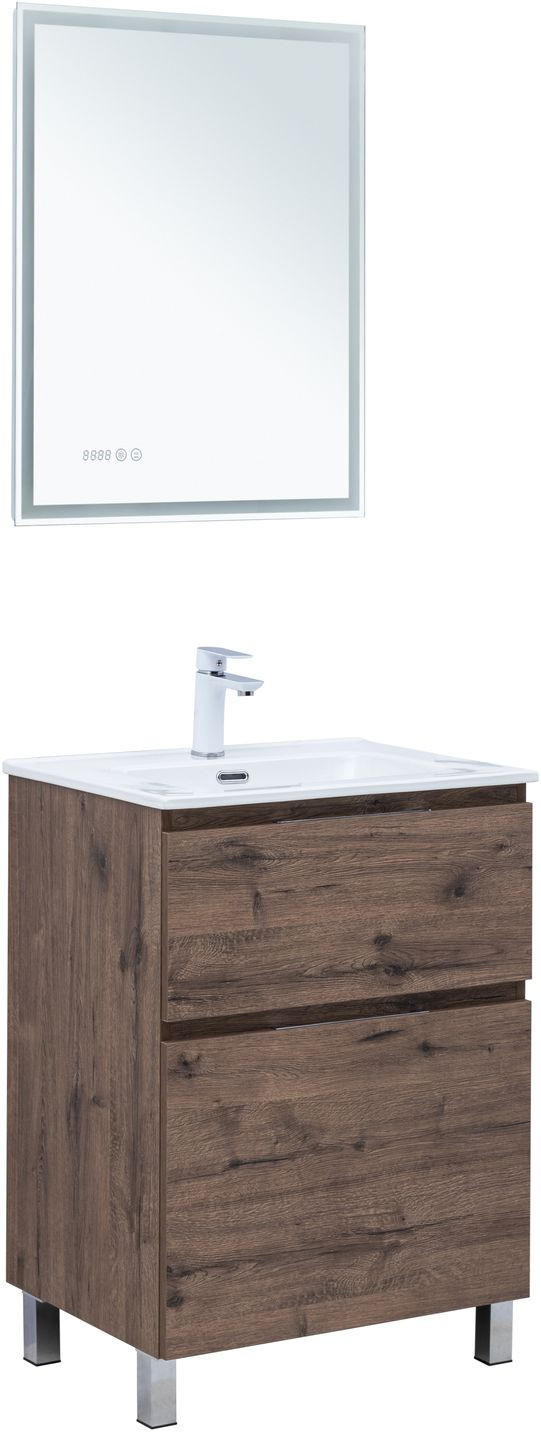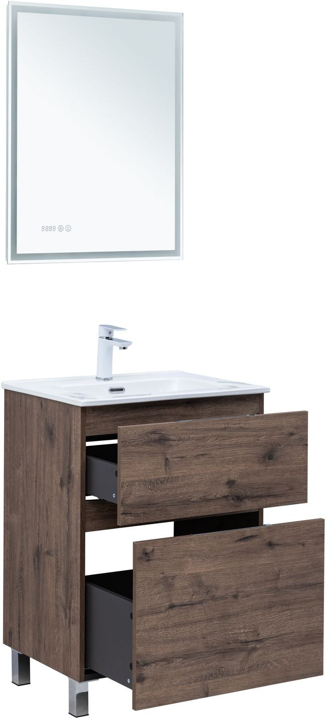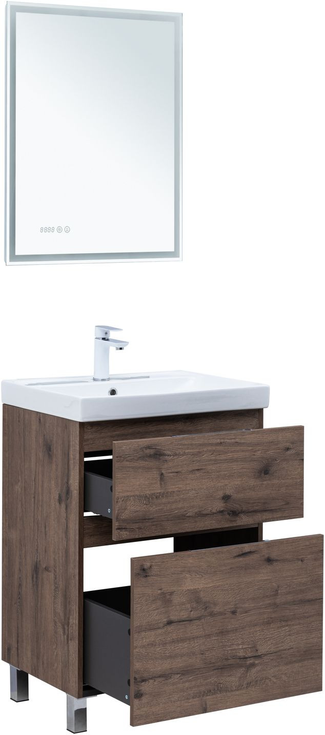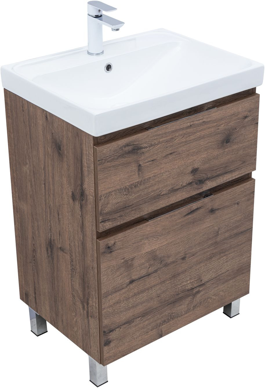 Тумба с раковиной Aquanet Алвита new 60 (Flat) напольная 2 ящ. цв.дуб веллингтон табак