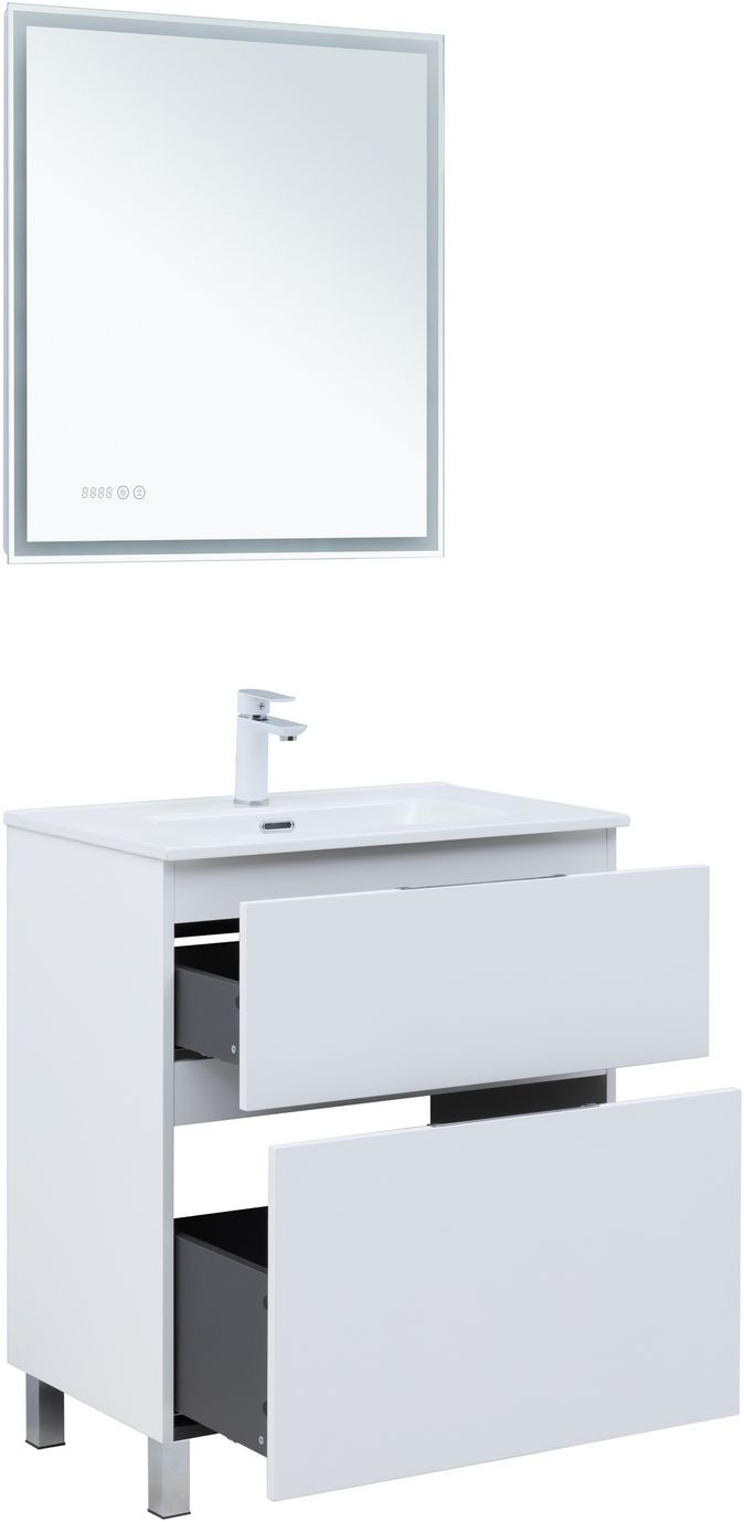 Тумба с раковиной Aquanet Алвита new 70 (Flat) напольная 2 ящ. цв. белый матовый