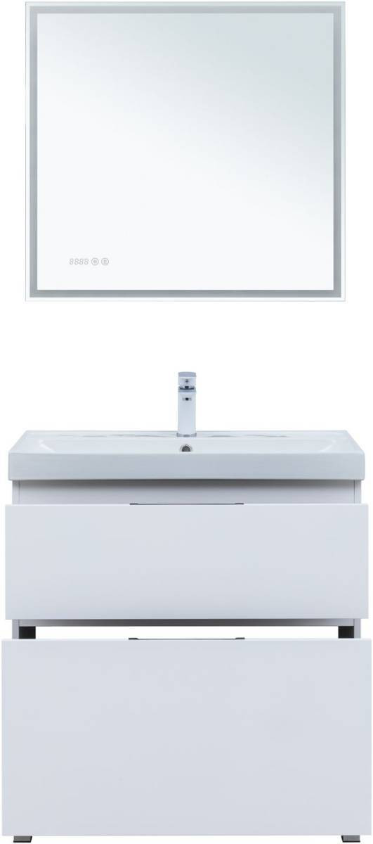 Тумба с раковиной Aquanet Алвита New 80 напольная, белый матовый + раковина Flash
