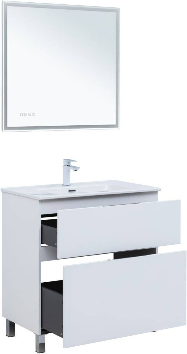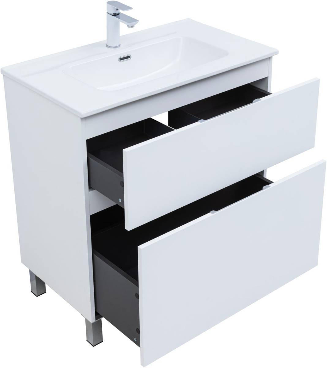 Тумба с раковиной Aquanet Алвита New 80 напольная, белый матовый + раковина Flat