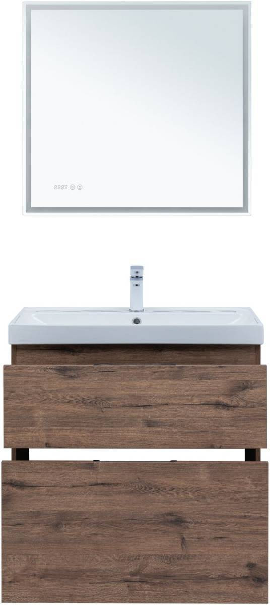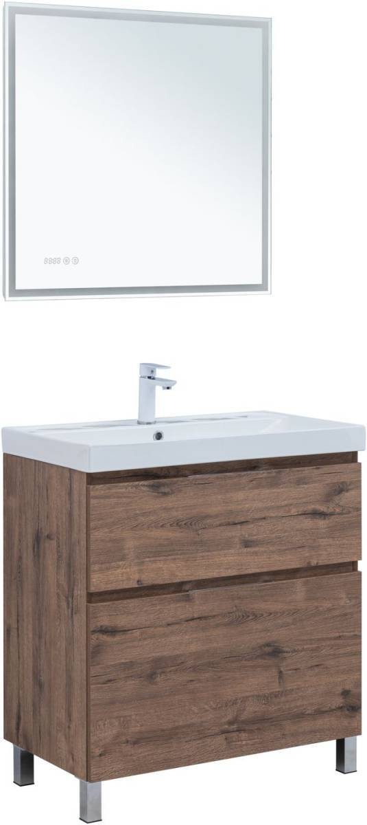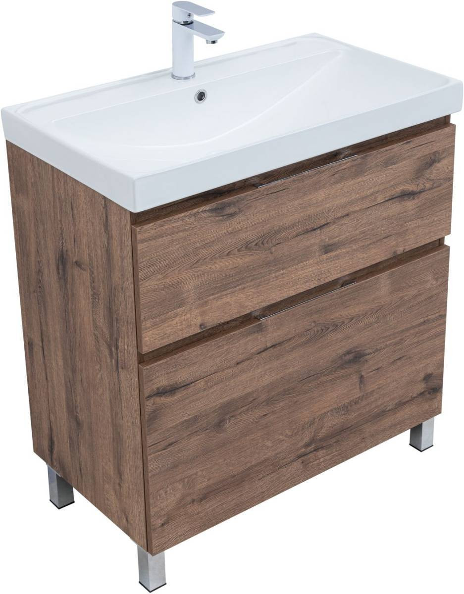 Тумба с раковиной Aquanet Алвита New 80 напольная, дуб веллингтон табак + раковина Flash