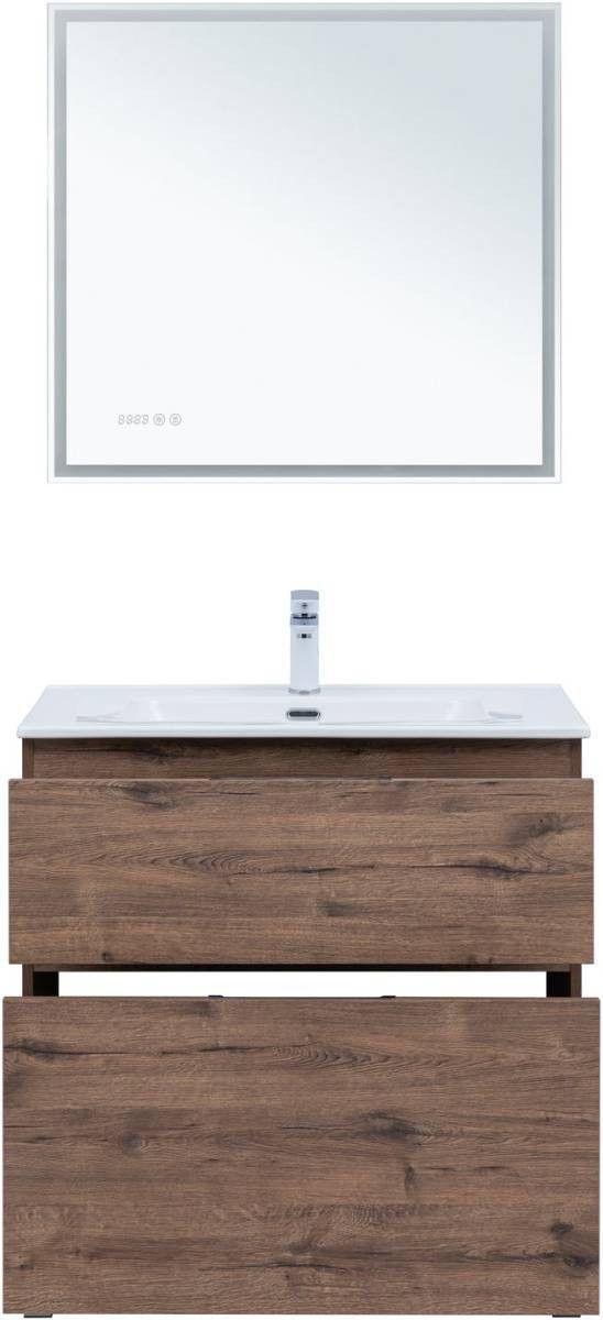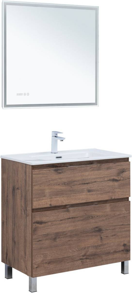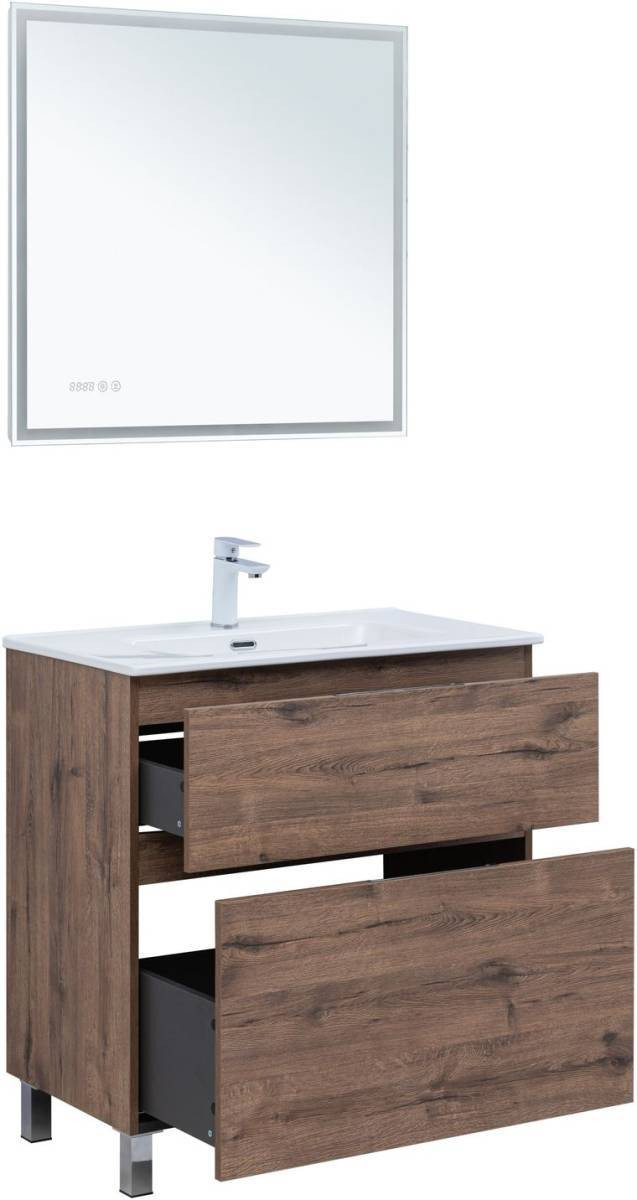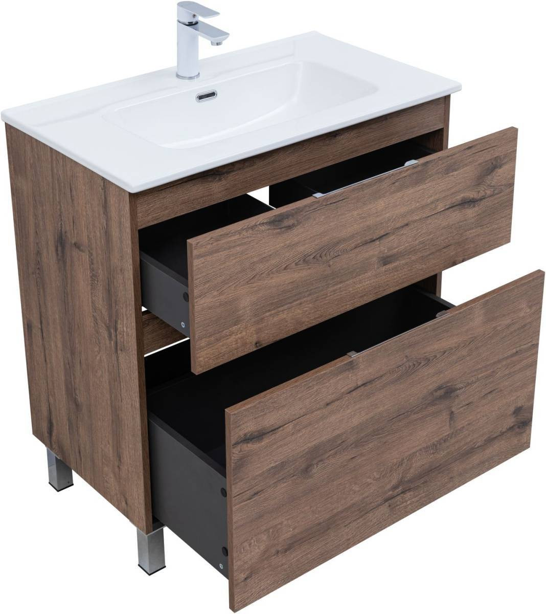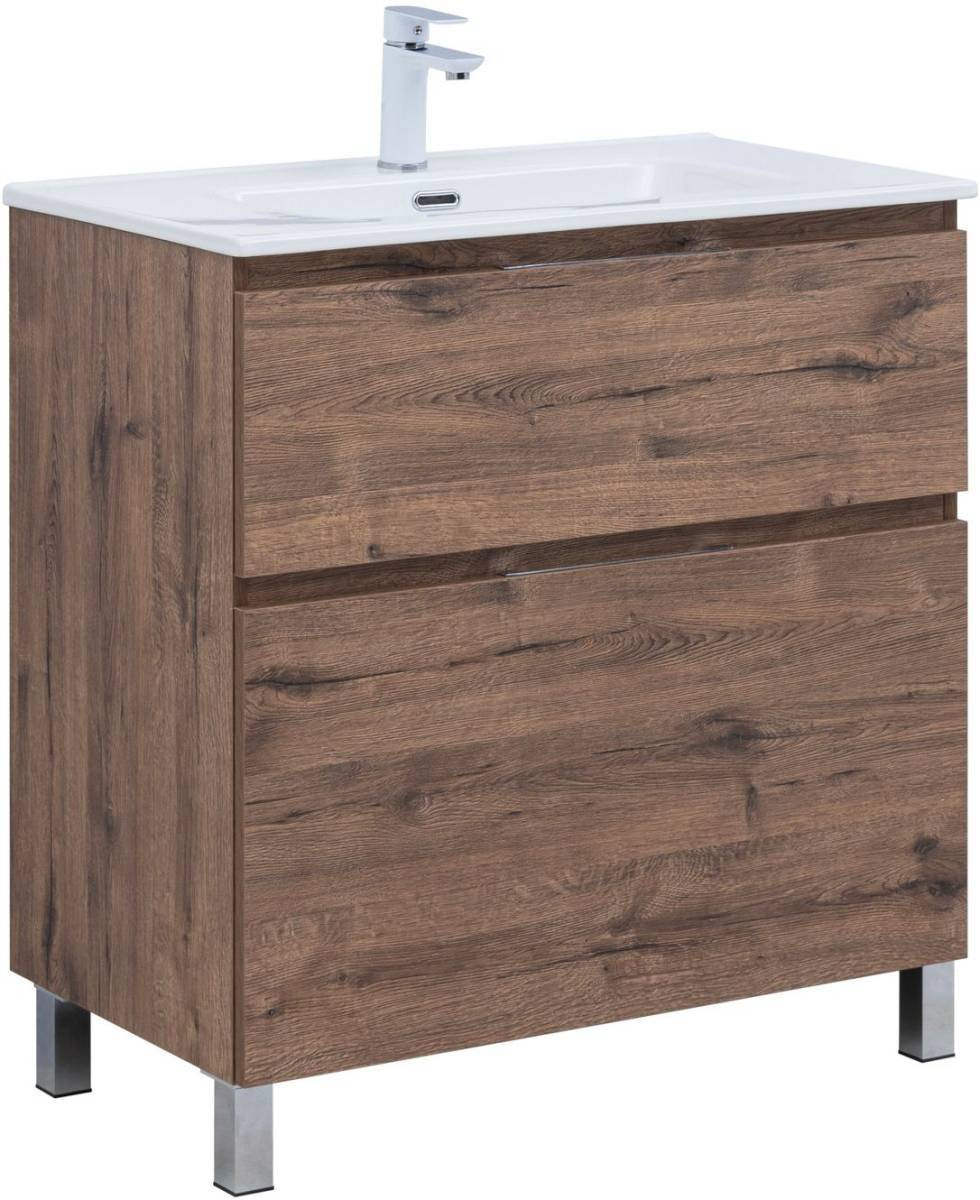 Тумба с раковиной Aquanet Алвита New 80 напольная, дуб веллингтон табак + раковина Flat