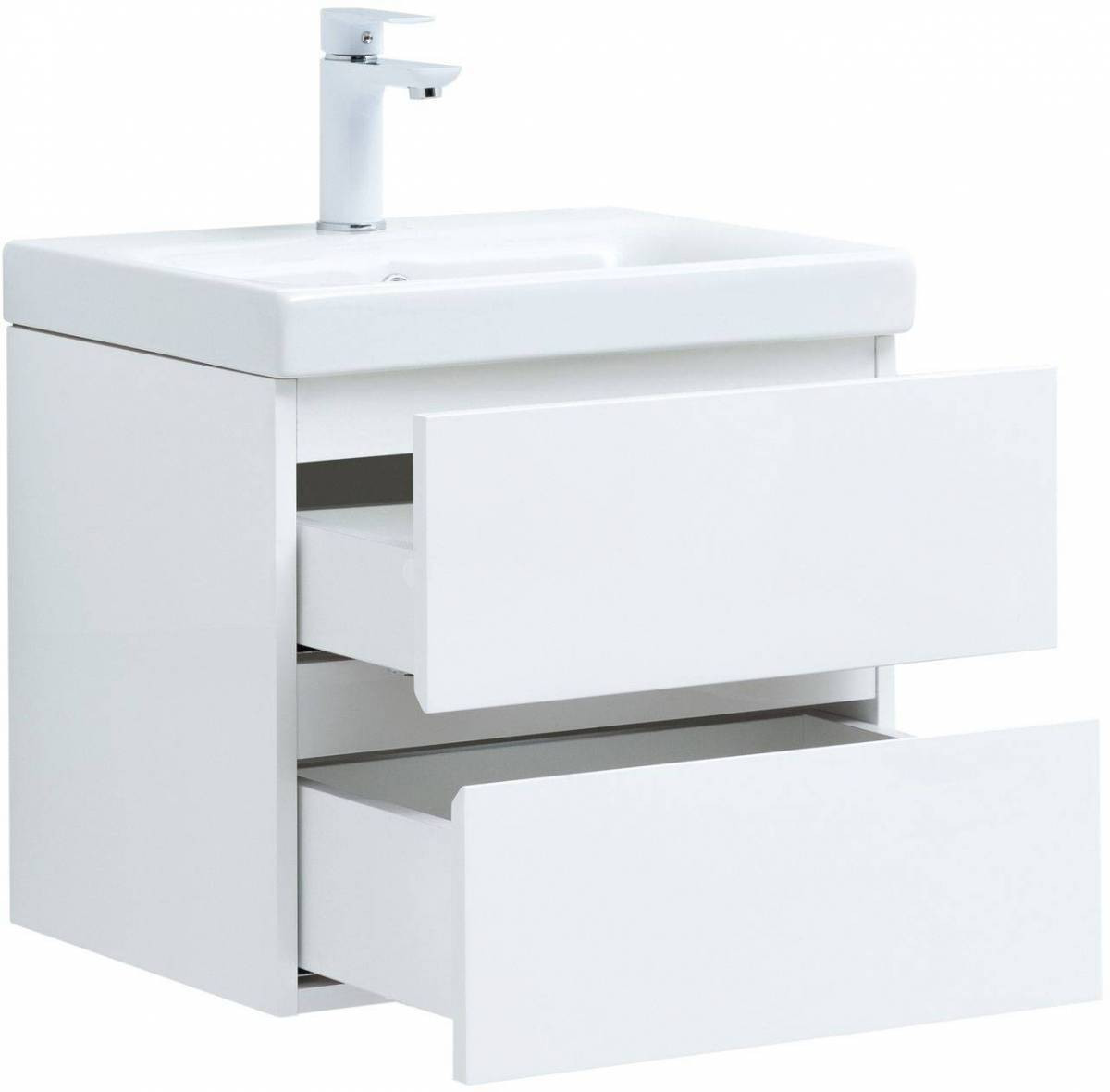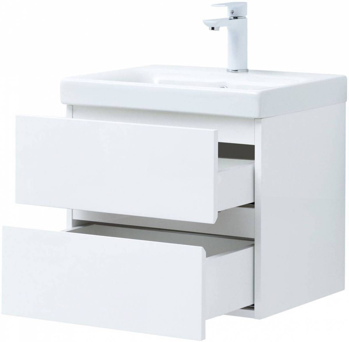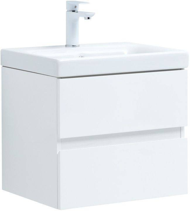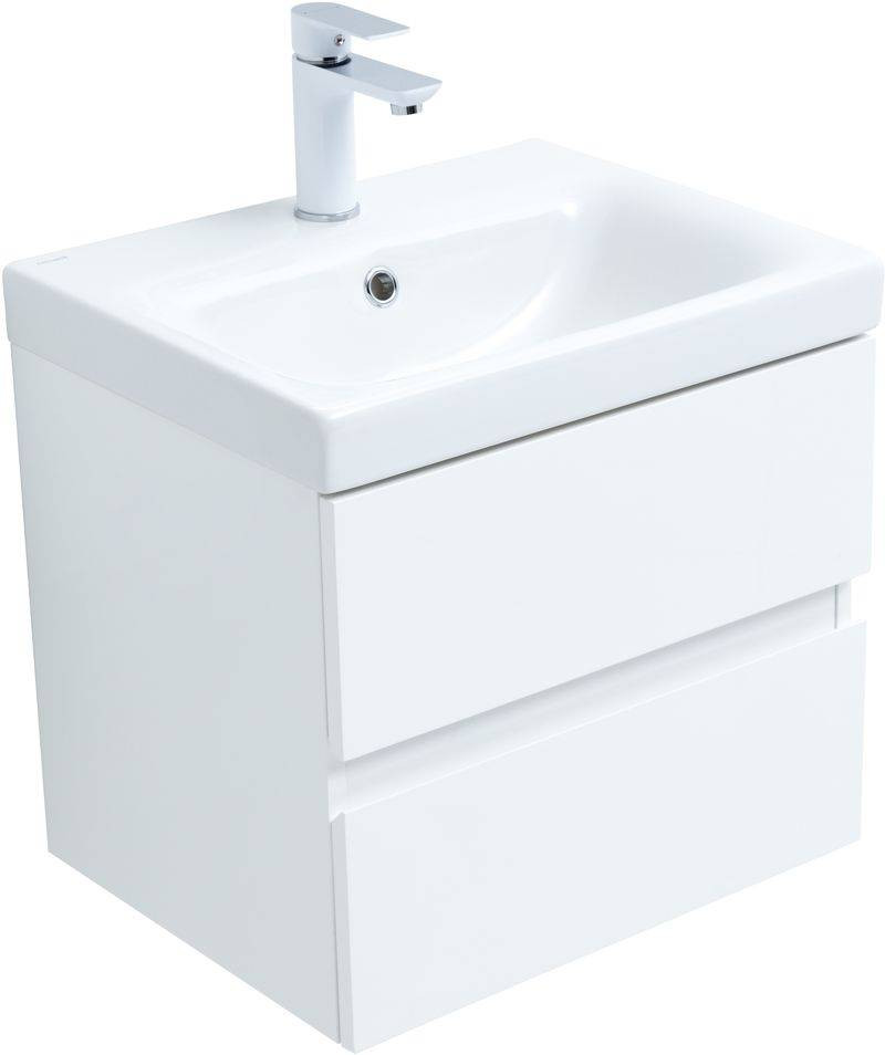 Тумба с раковиной Aquanet Беркли 50 белый глянец (2 ящика)