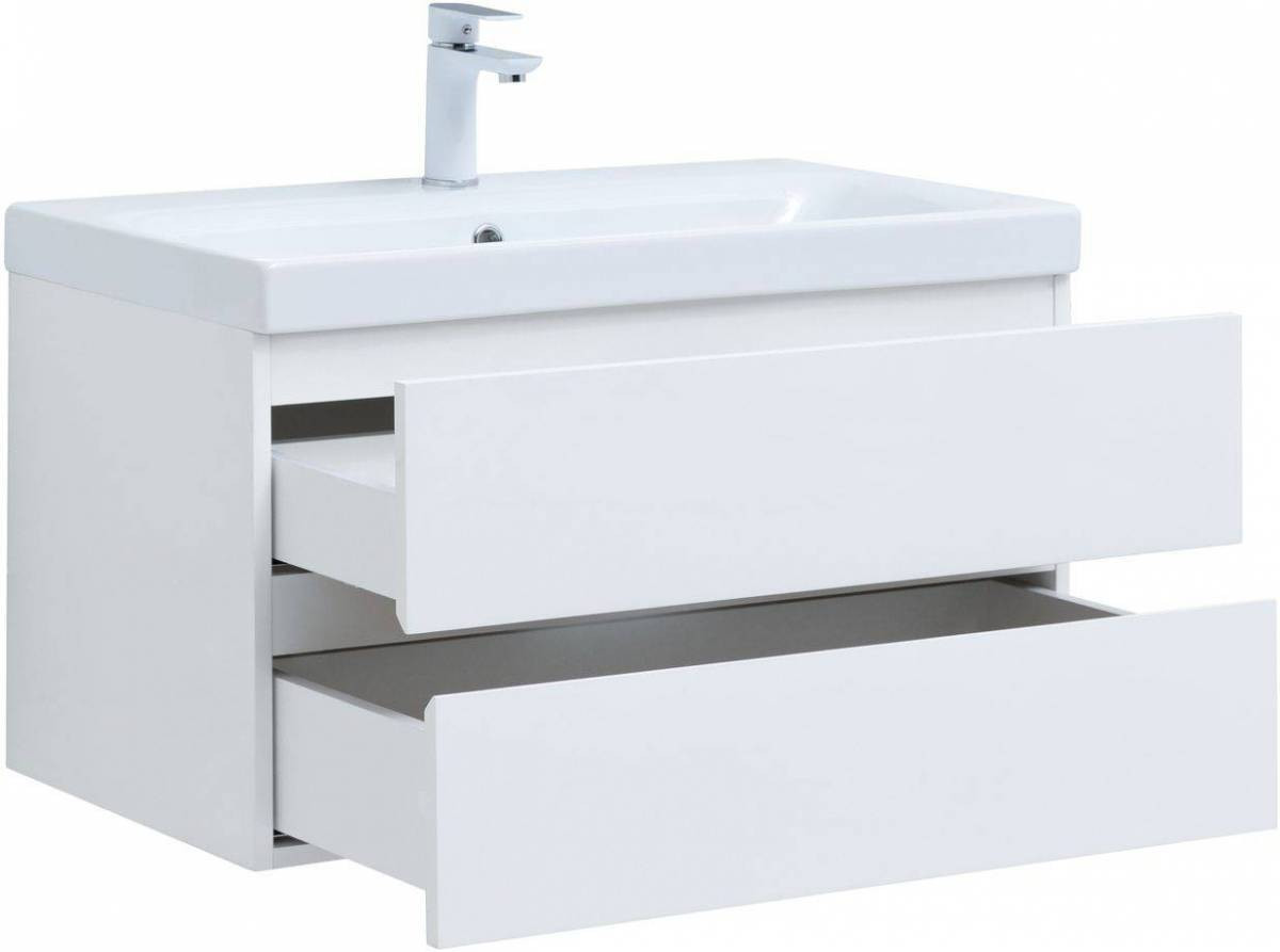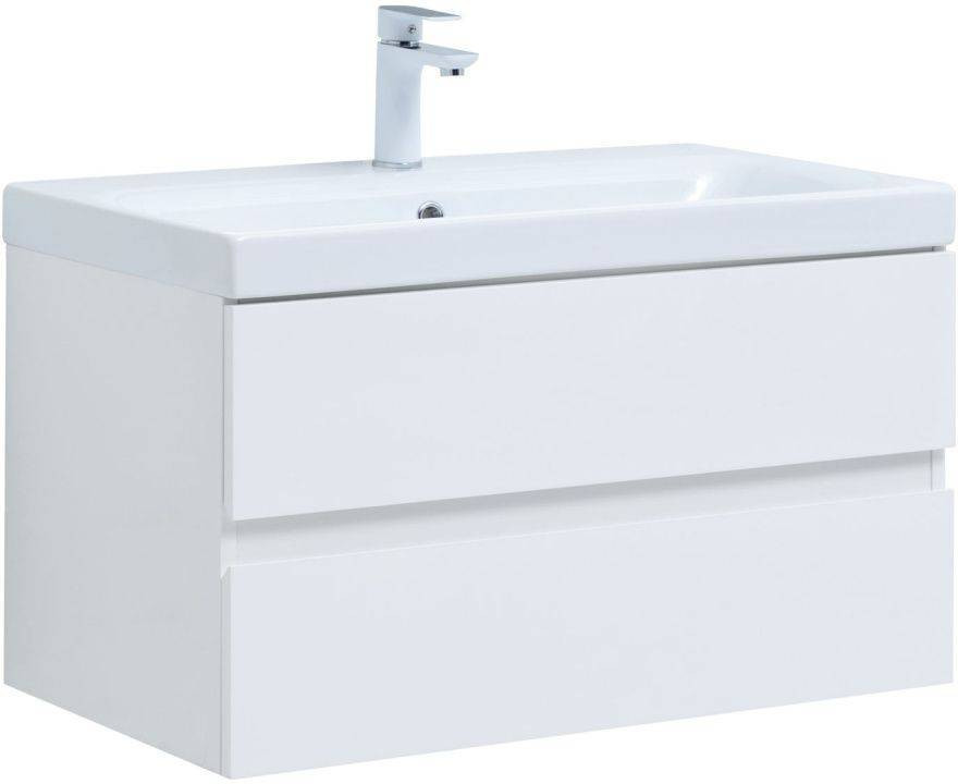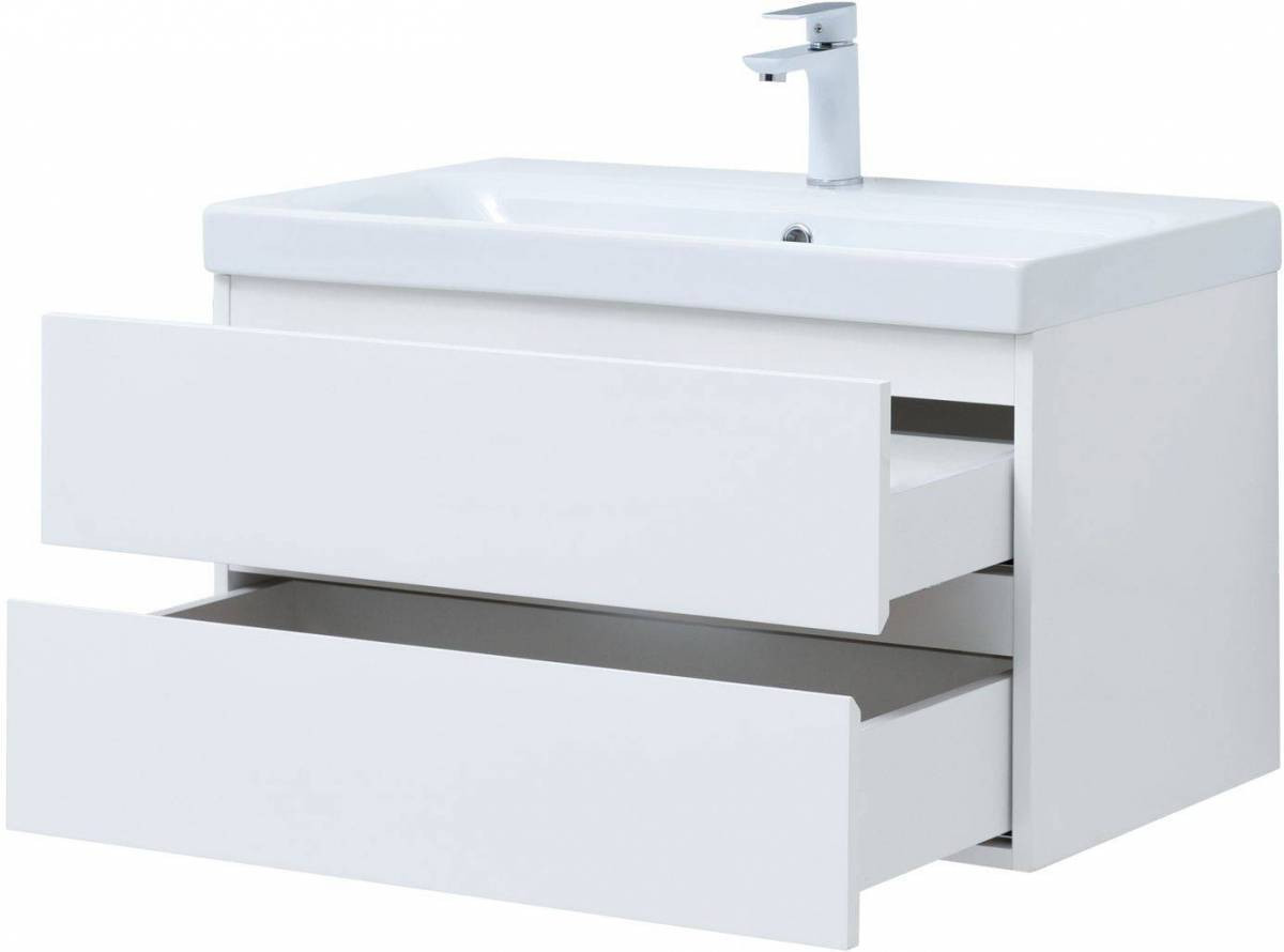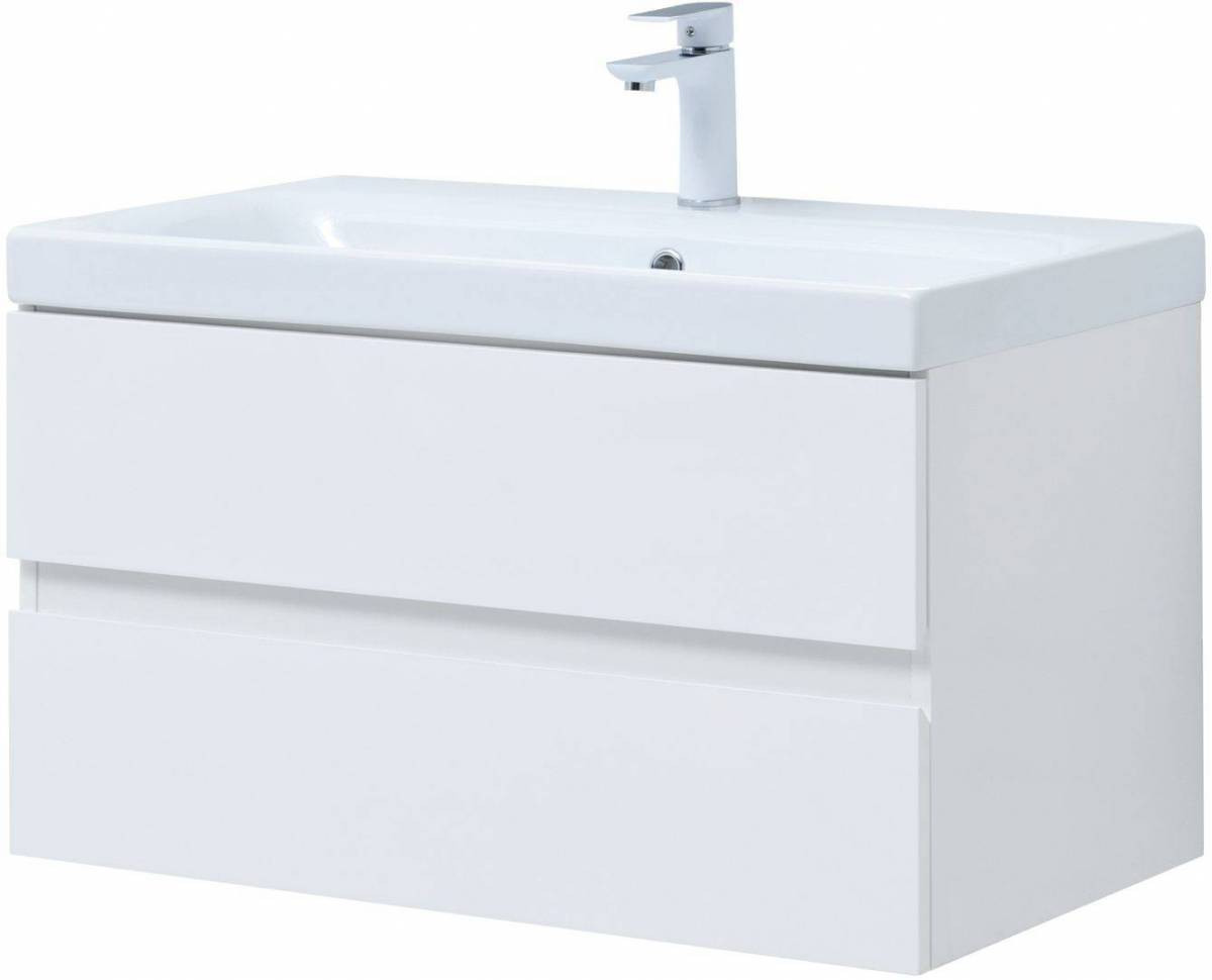 Тумба с раковиной Aquanet Беркли 80 белый глянец (2 ящика)