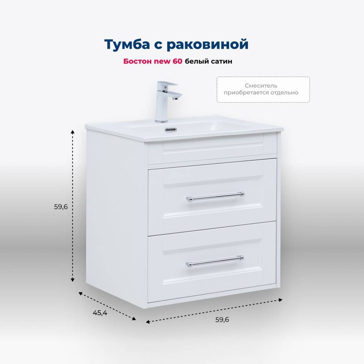 Тумба с раковиной Aquanet Бостон new 60 (Flat) цв.белый сатин (345364)