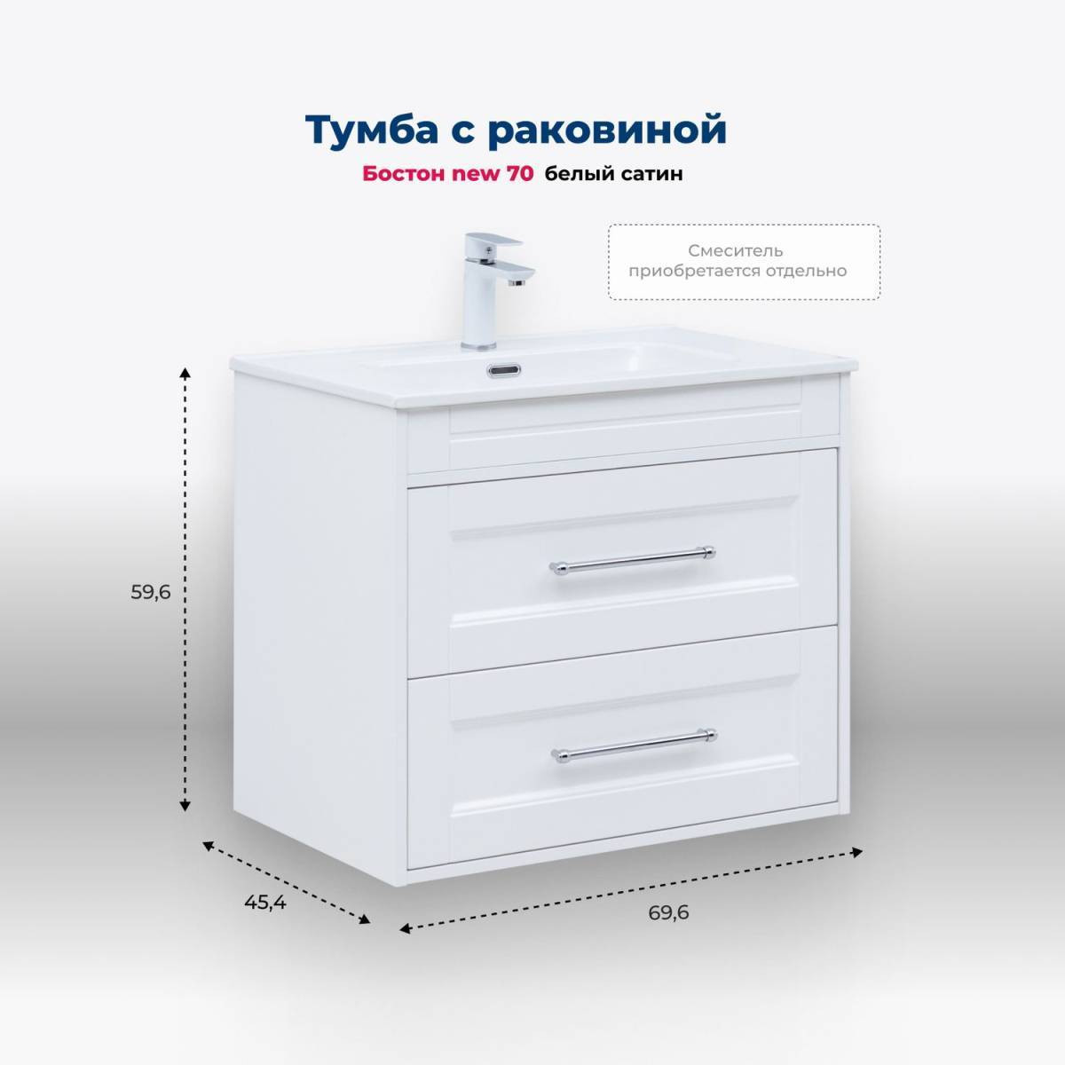 Тумба с раковиной Aquanet Бостон new 70 (Flash) цв.белый сатин (345369)
