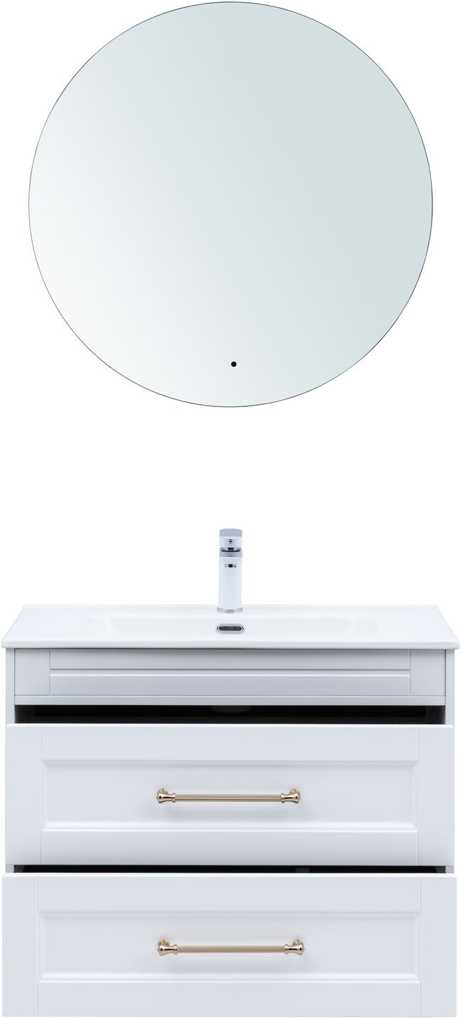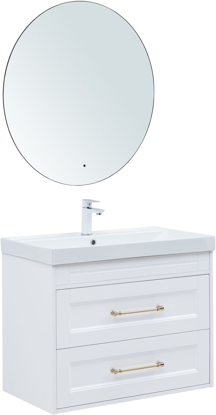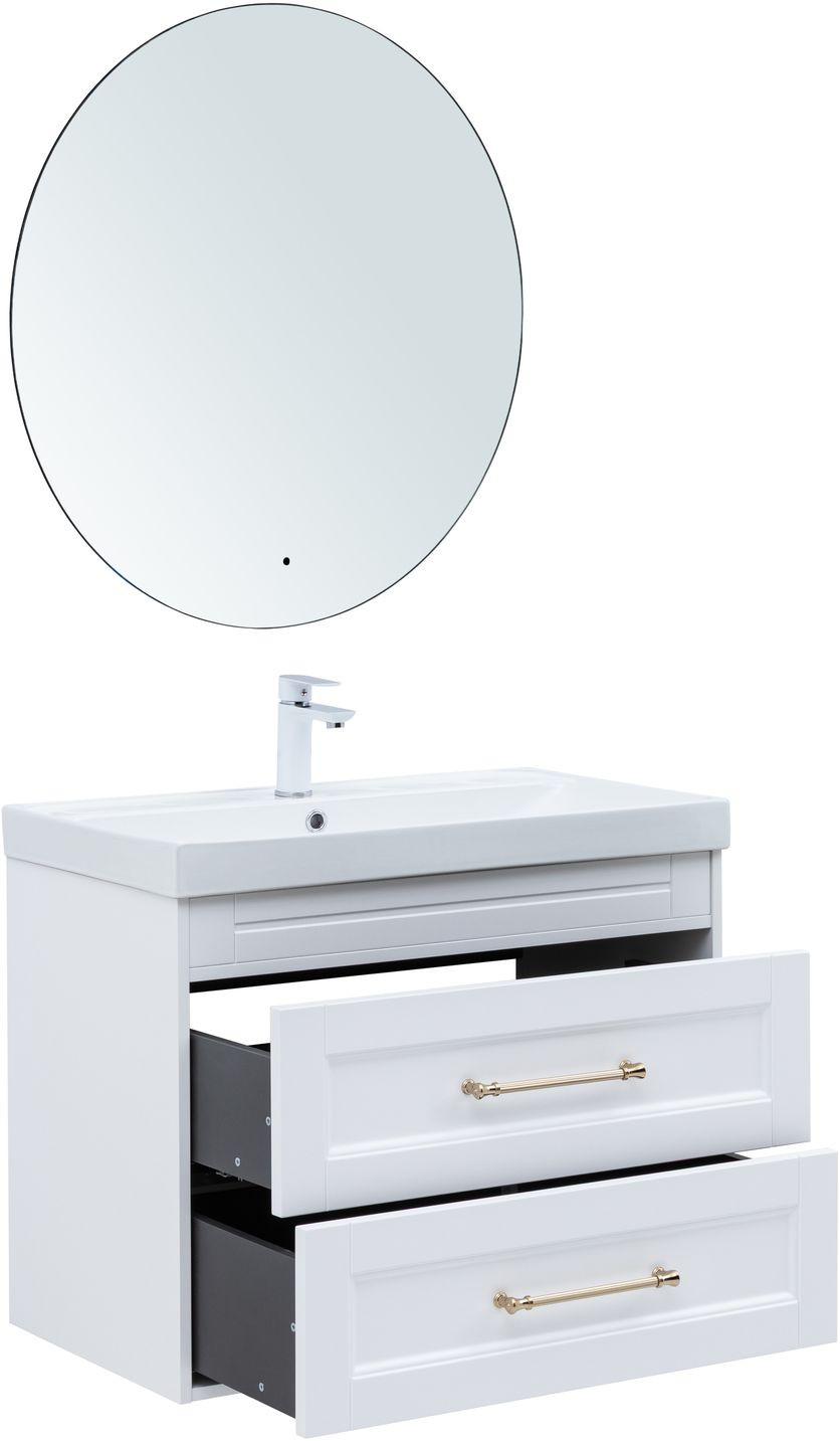 Тумба с раковиной Aquanet Бостон new 80 (Flat) цв.белый сатин, ручки золото
