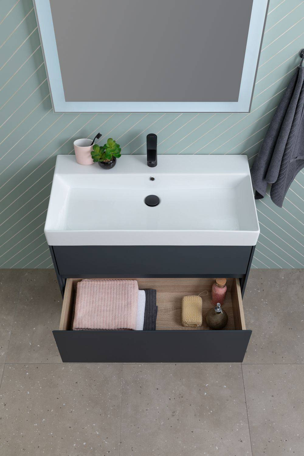 Тумба с раковиной Aquanet Бруклин 100 антрацит матовый