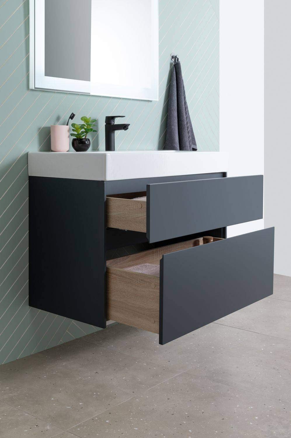Тумба с раковиной Aquanet Бруклин 85 антрацит матовый