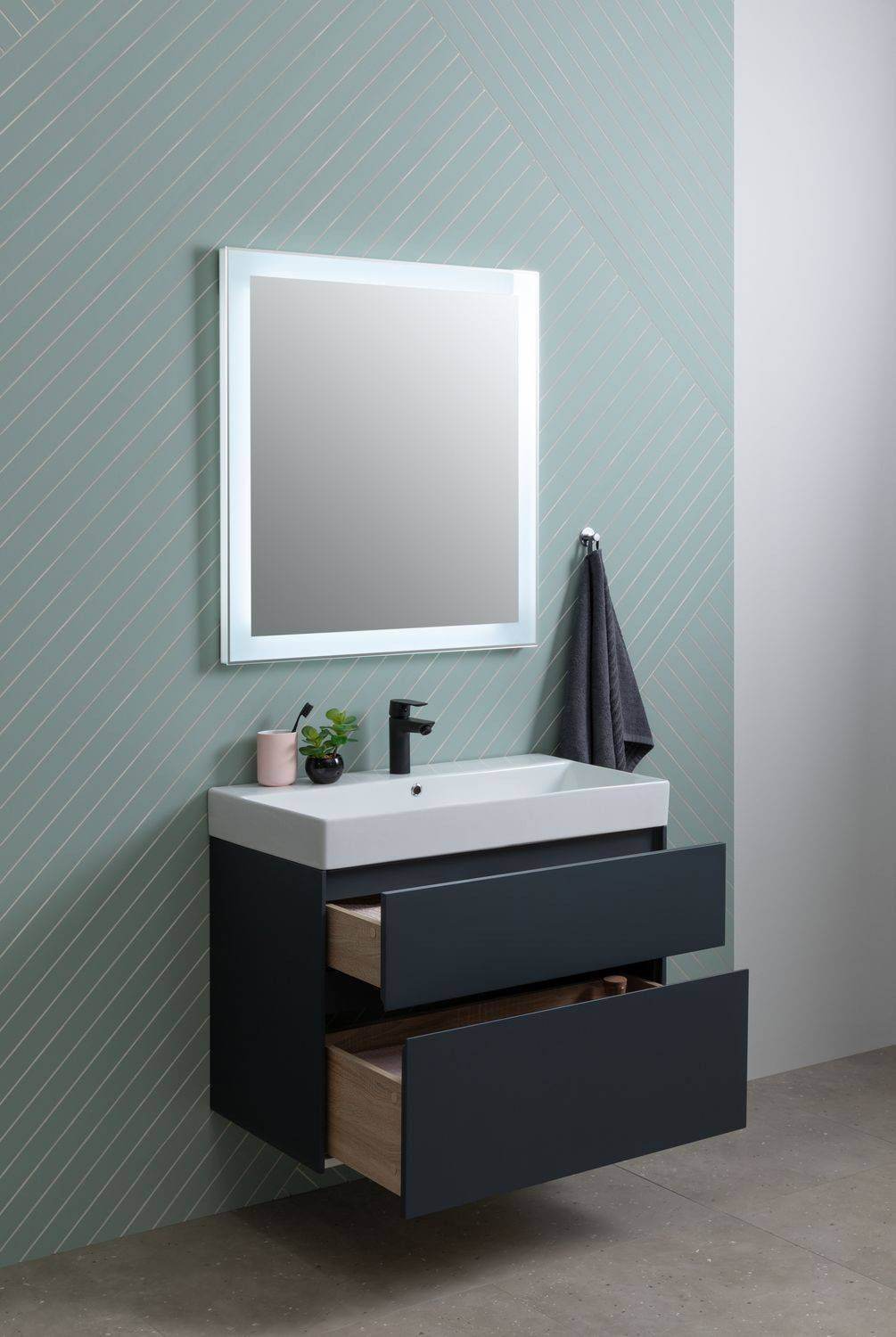 Тумба с раковиной Aquanet Бруклин 85 антрацит матовый