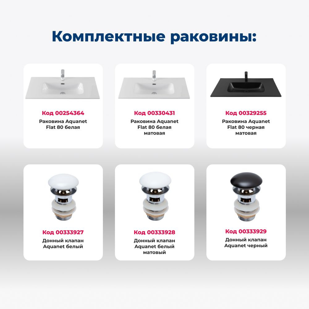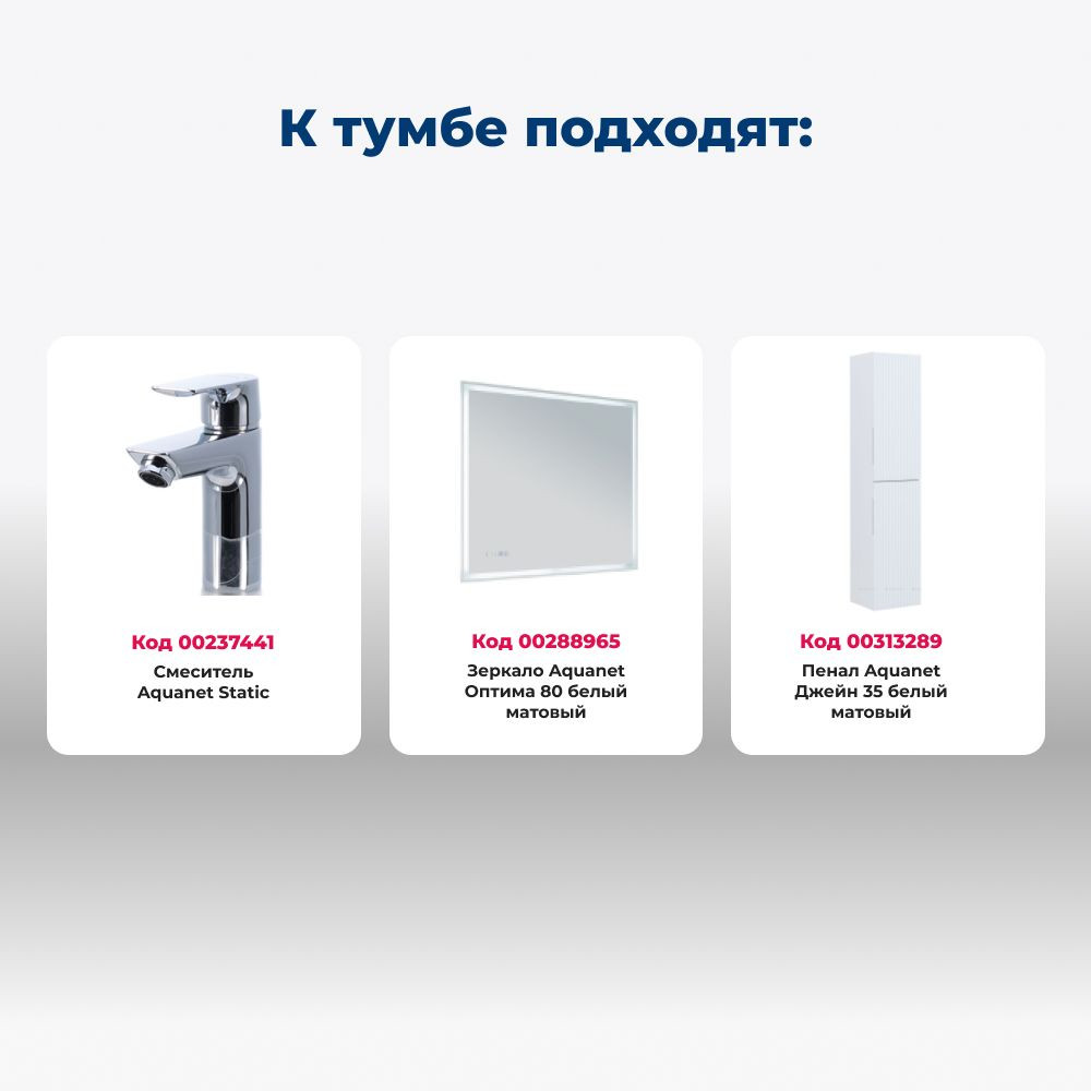 Тумба с раковиной Aquanet Джейн 80 цв.белый матовый (раковина Flat)