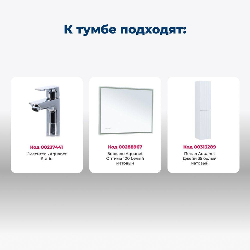 Тумба с раковиной Aquanet Джейн (Flat) 100 белый матовый