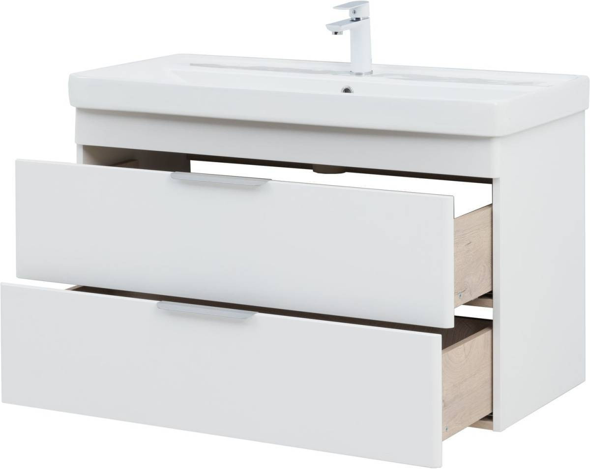 Тумба с раковиной Aquanet Ирис New 100 белый глянец