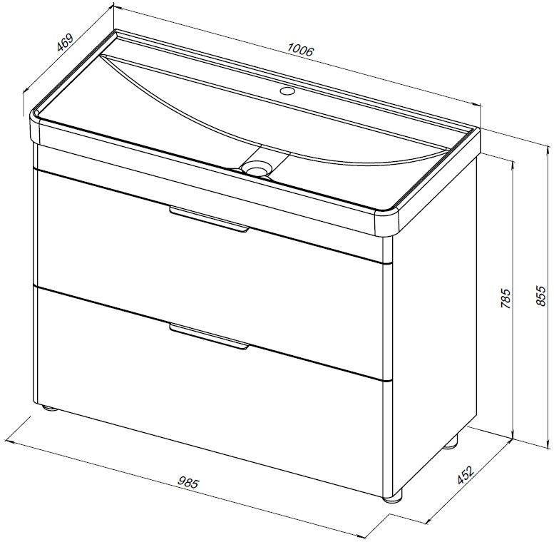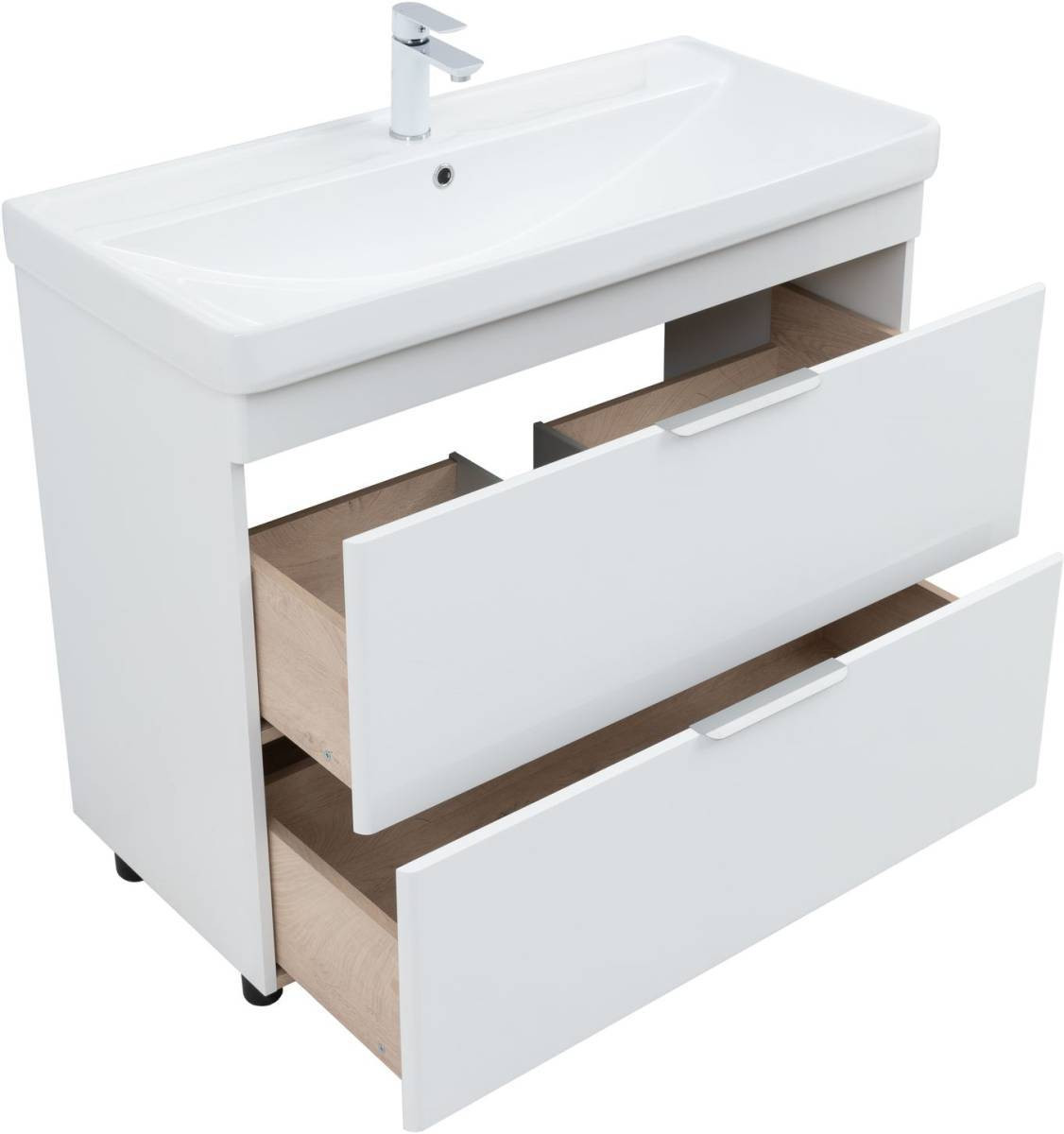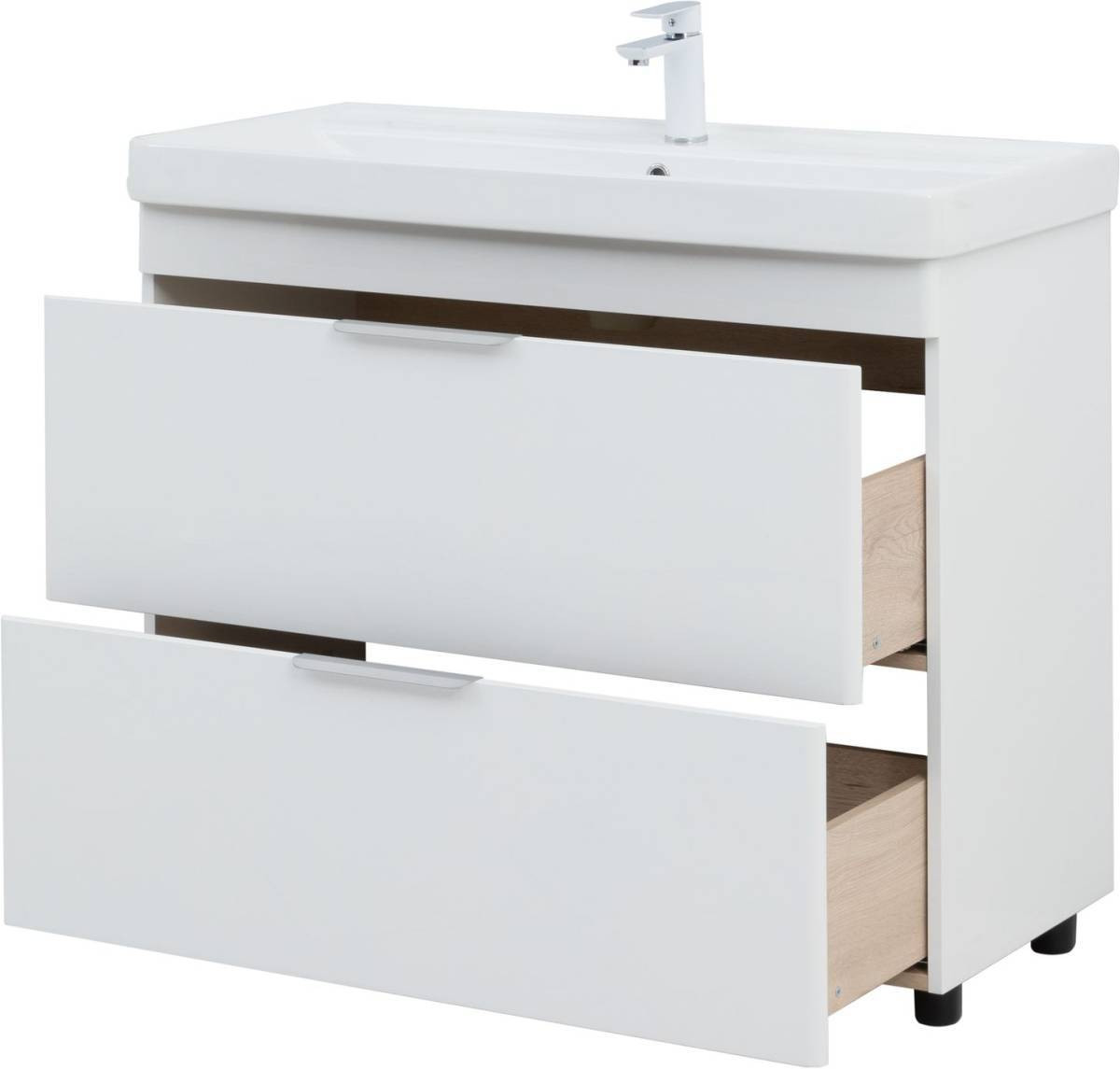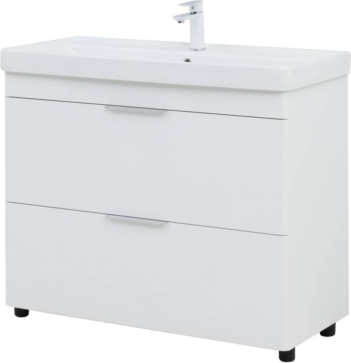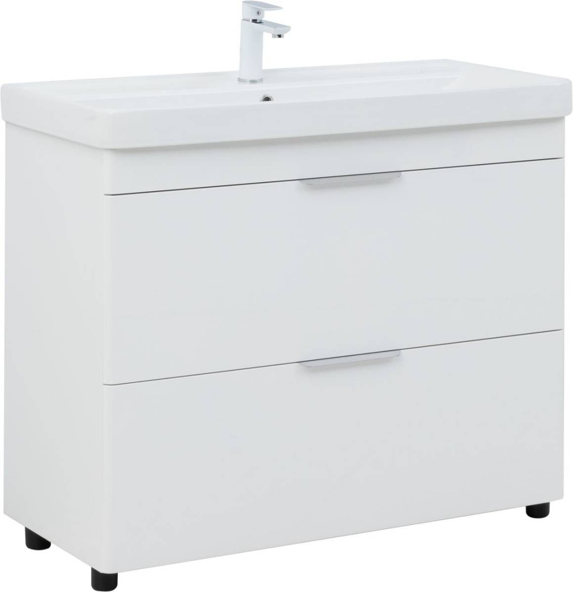 Тумба с раковиной Aquanet Ирис New 100 напольная, белый глянец
