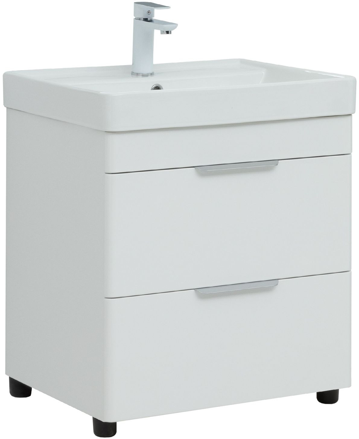 Тумба с раковиной Aquanet Ирис new 60 (Ирис Т) напольная 2 ящ. цв.белый глянец