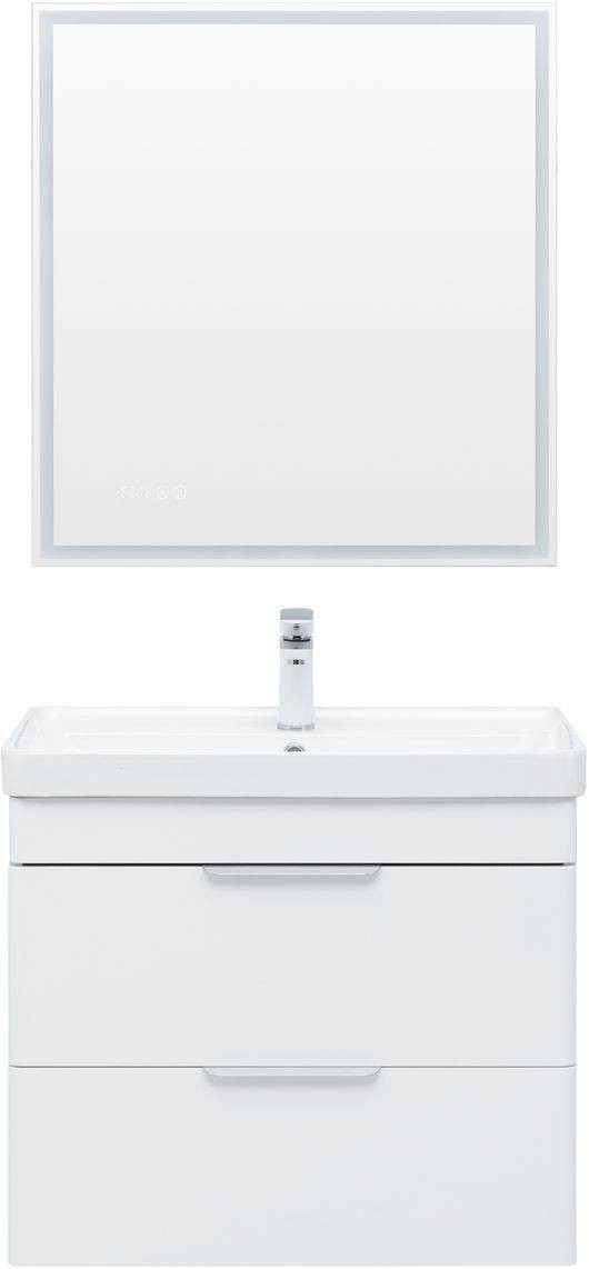 Тумба с раковиной Aquanet Ирис new 70 белый глянец (2 ящика)