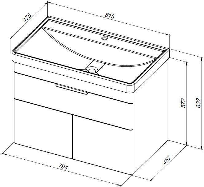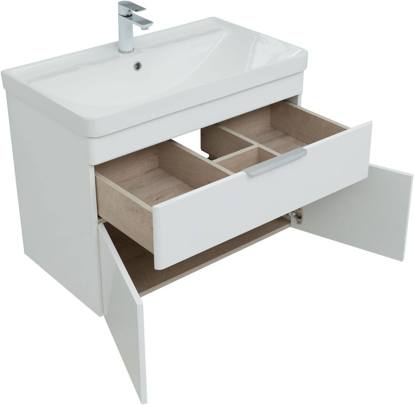 Тумба с раковиной Aquanet Ирис new 80 белый глянец (1 ящик, 2 дверцы)