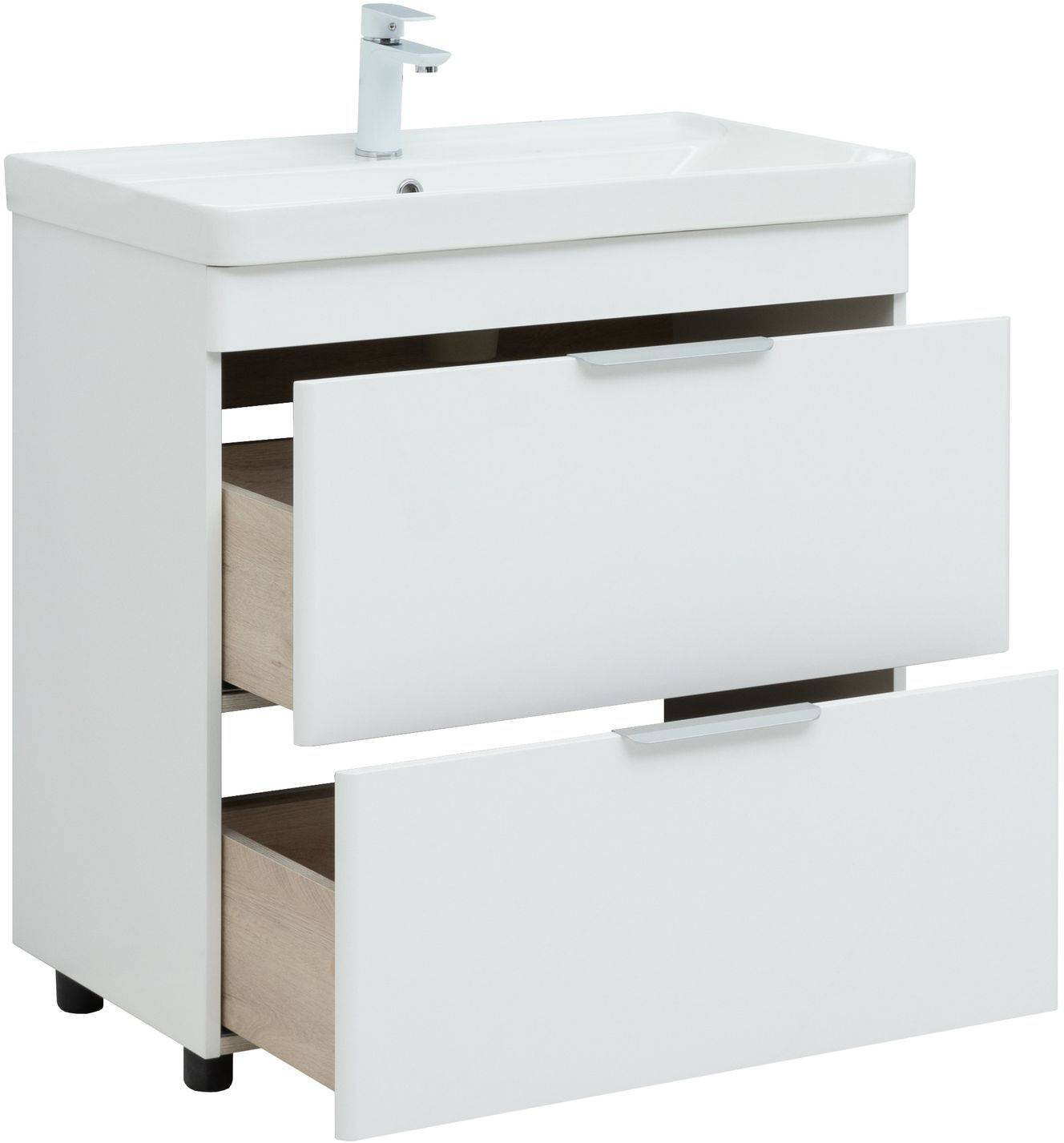 Тумба с раковиной Aquanet Ирис new 80 белый глянец (2 ящика)