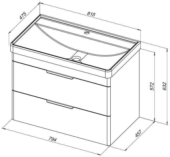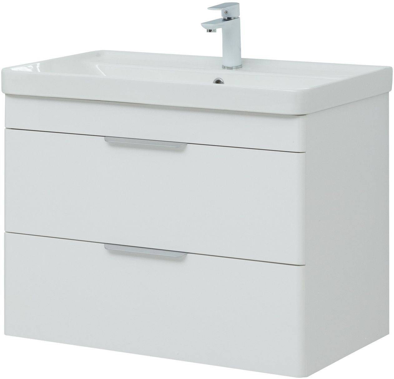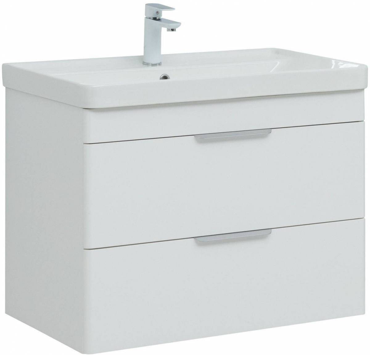 Тумба с раковиной Aquanet Ирис new 80 белый глянец (2 ящика)